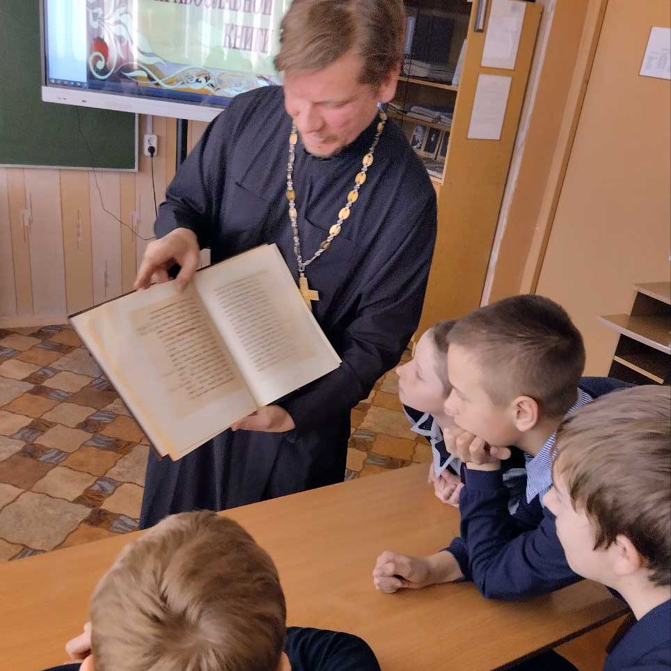 Настоятель храма святых апостолов Петра и Павла д. Бацевичи иерей Максим Киреев посетил ГУО «Бацевичская средняя школа». Встреча была посвящена Дню православной книги.