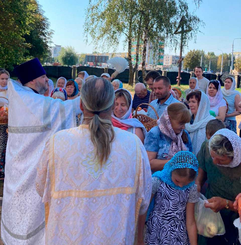19 августа 2024 года, в день Преображения Господа Бога и Спаса нашего Иисуса Христа, на прилегающей территории строящегося Спасо-Преображенского храма г. Бобруйска была совершена Божественная литургия, которую возглавил настоятель Николо-Софийского прихода г. Бобруйска протоиерей Дмитрий Баркарь.