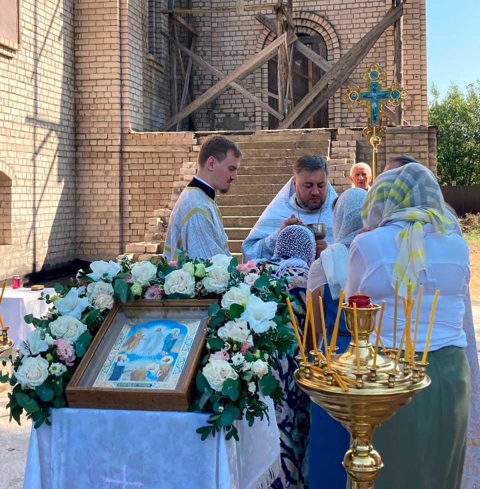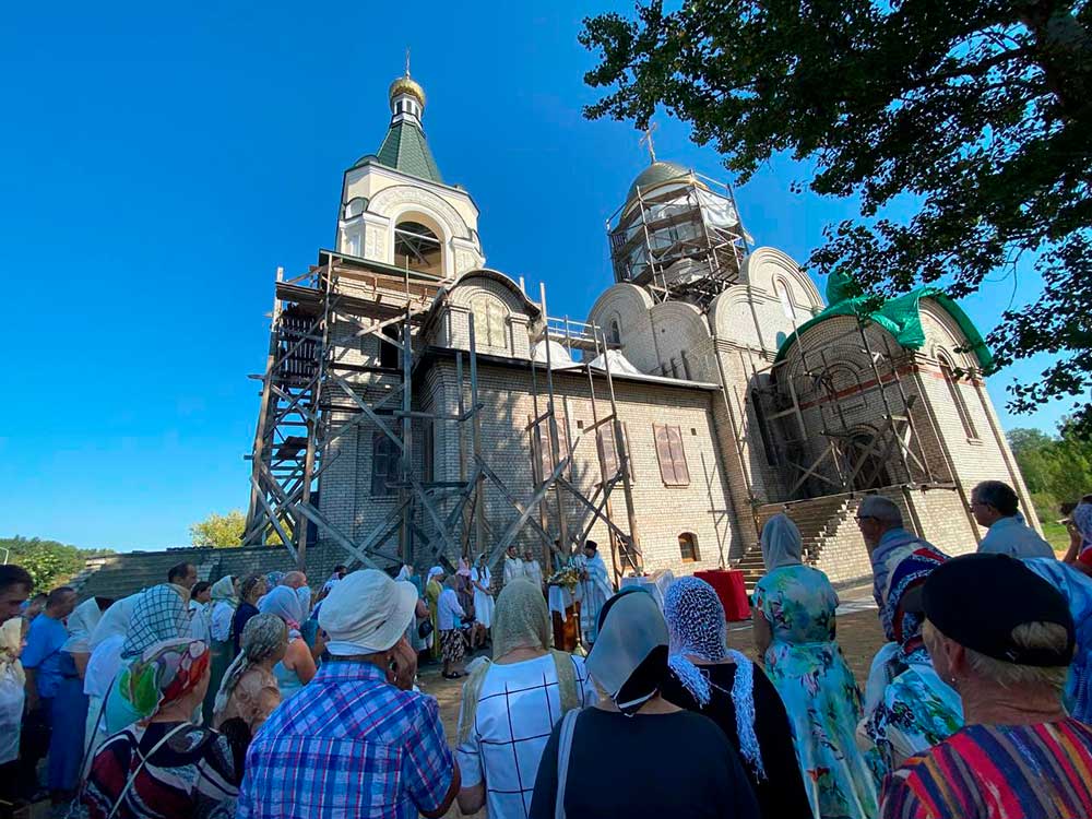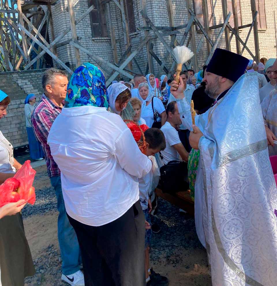 Это второе богослужение со дня начала строительства. Верующие молились под открытым небом. По окончании богослужения было совершено славление Празднику и освящение плодов нового урожая.