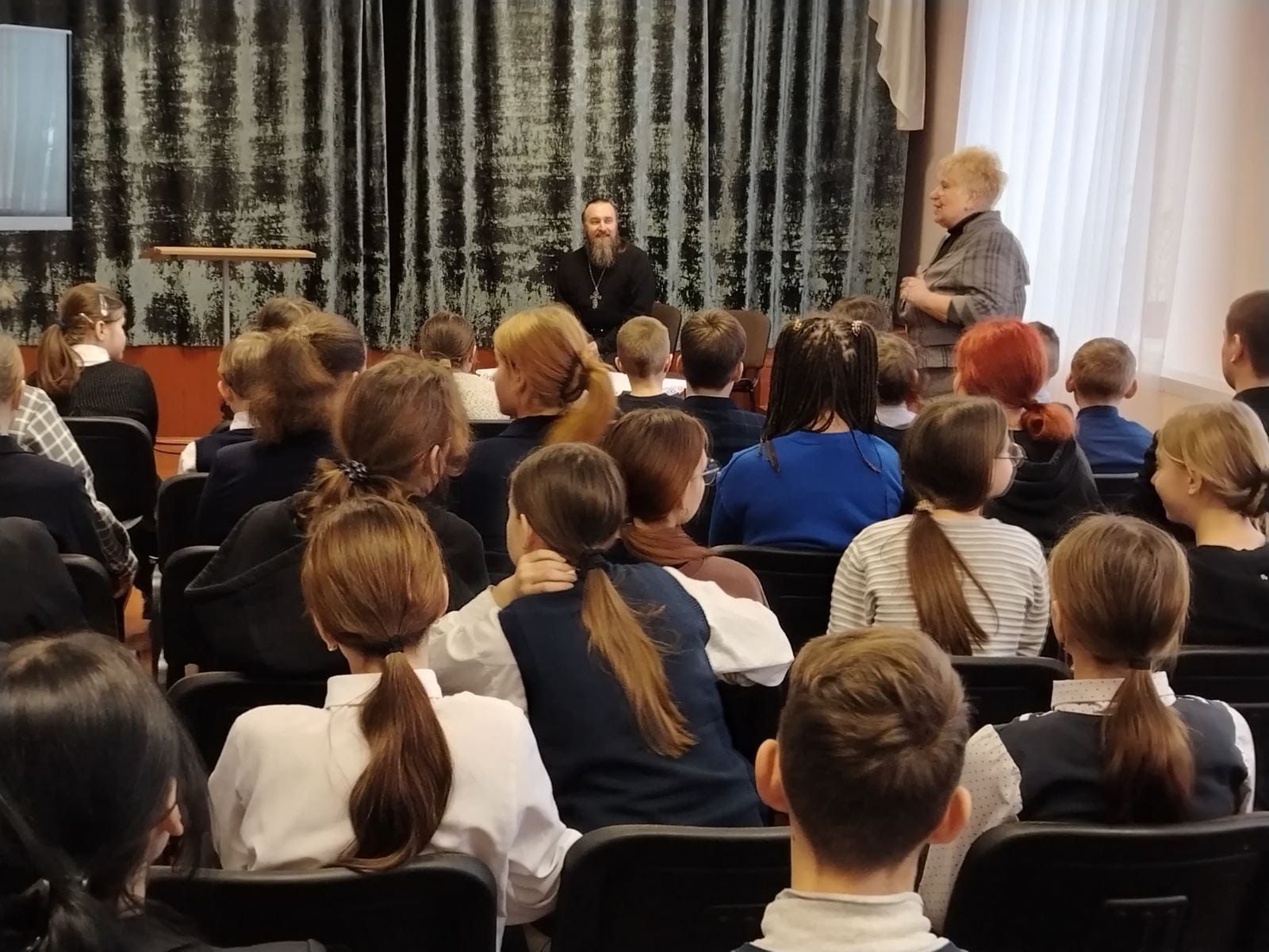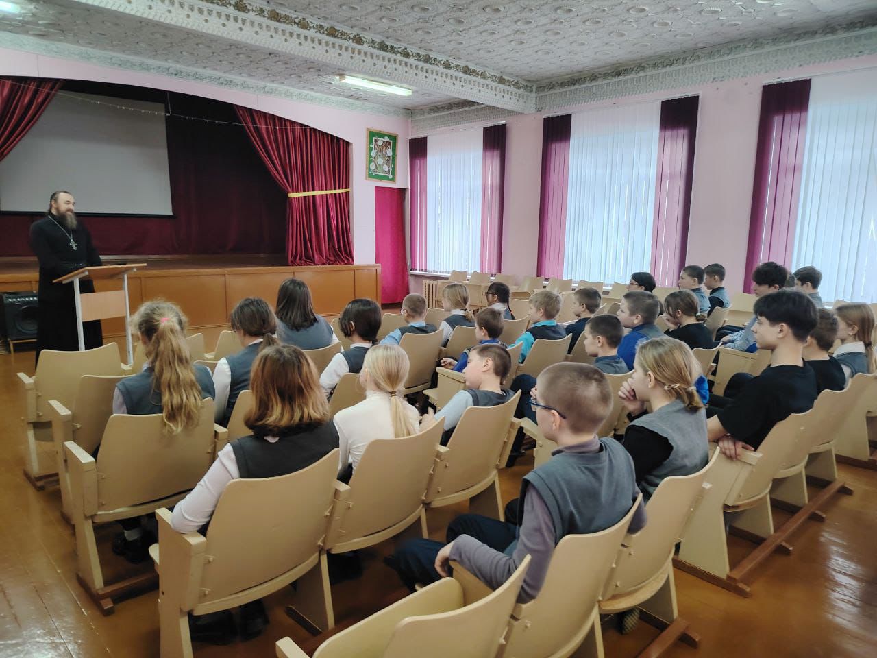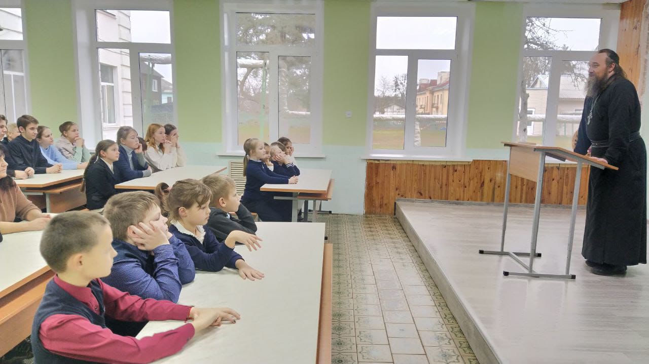 В каждой школе иеромонах Дамиан провел беседы, в которых рассказал детям о праздновании Рождества Христова и Крещения Господня.