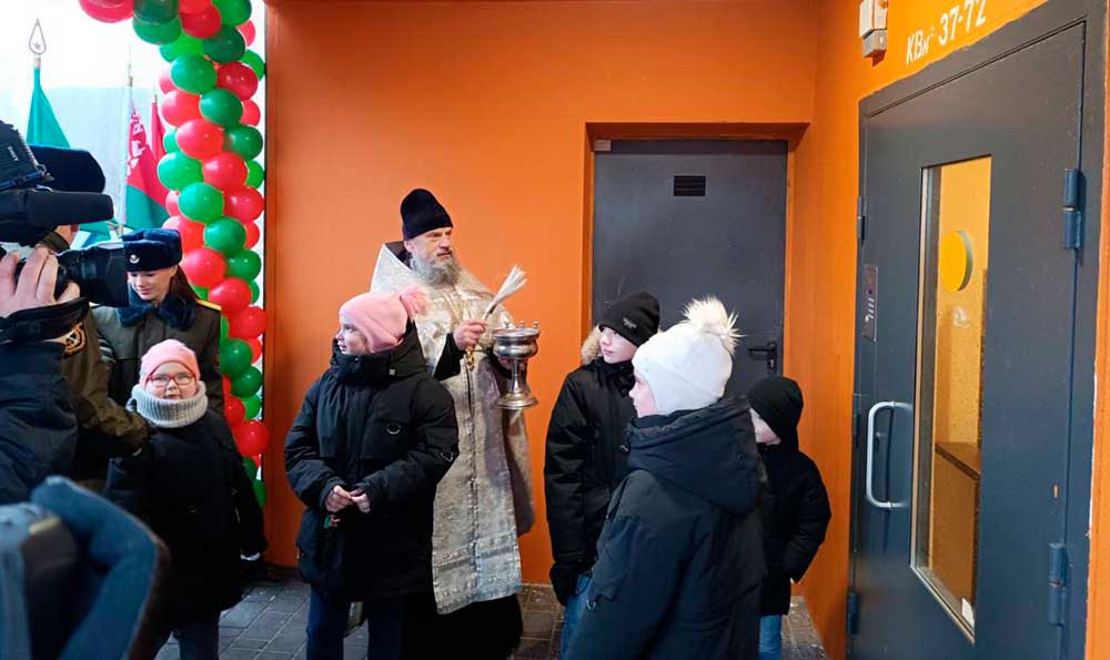 Протоиерей Александр совершил чин освящения дома, после чего обратился к новоселам с поздравлением и пожелал всем присутствующим Божией помощи.