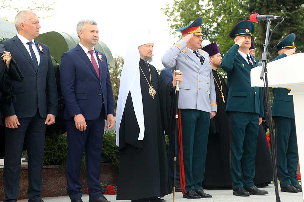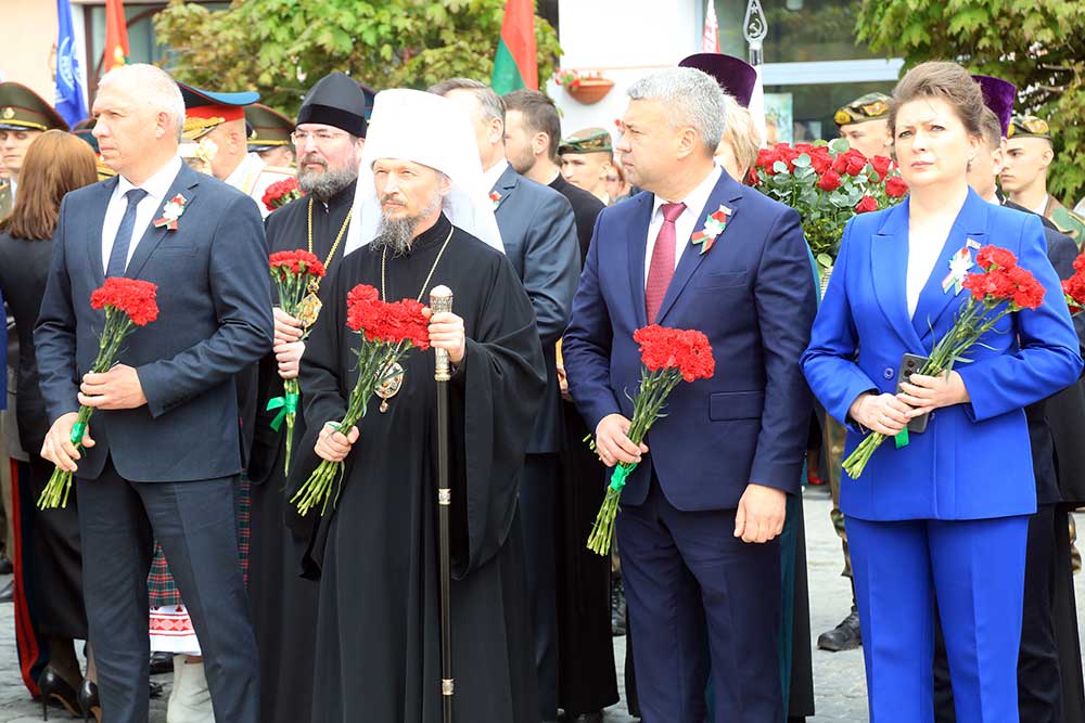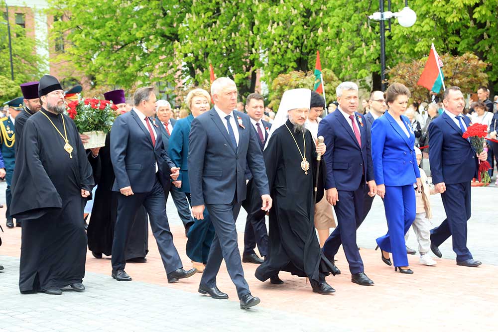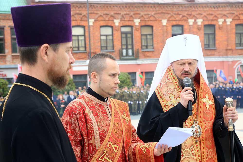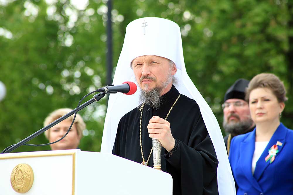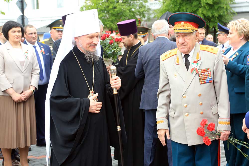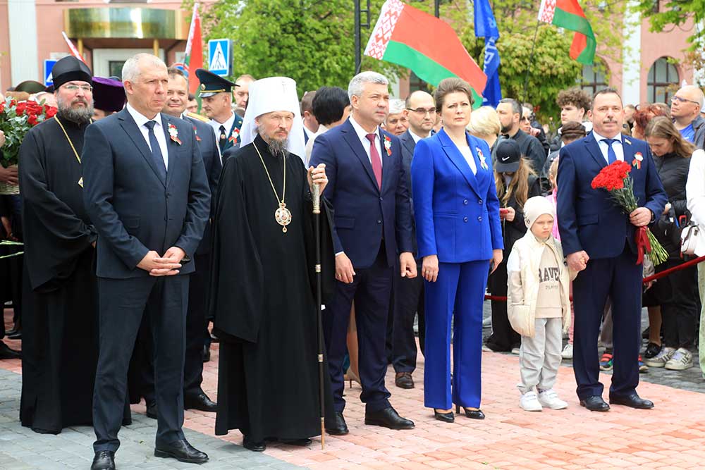Митрополит Вениамин обратился к присутствующим со словом, в котором поздравил бобруйчан и гостей города с 80-летием Великой Победы, после чего вознес молитву о погибших в годы войны.