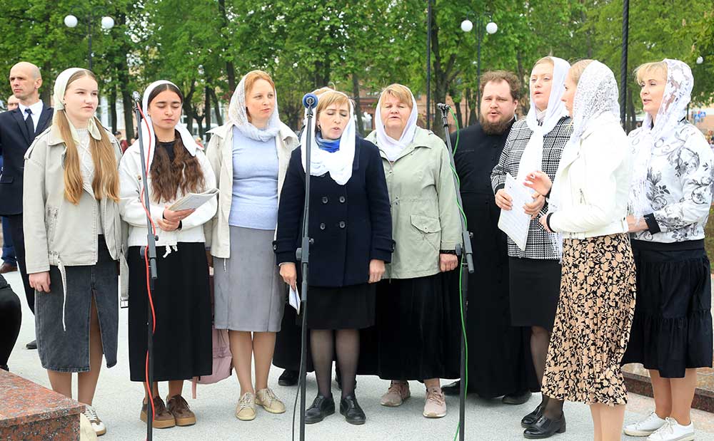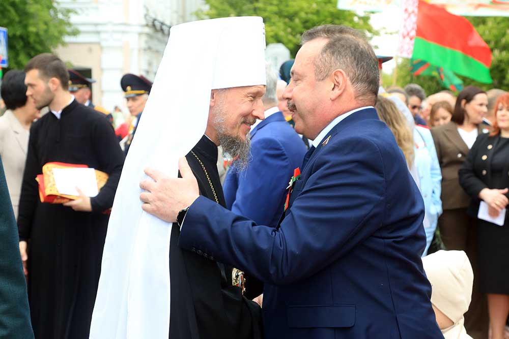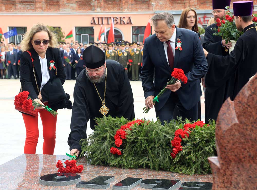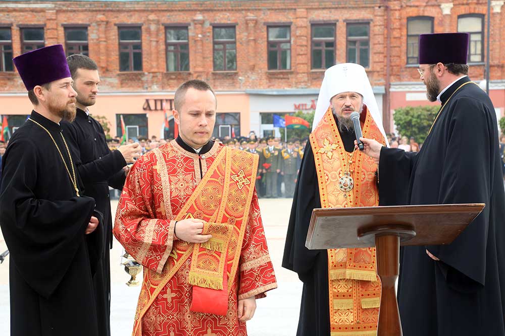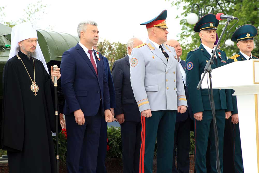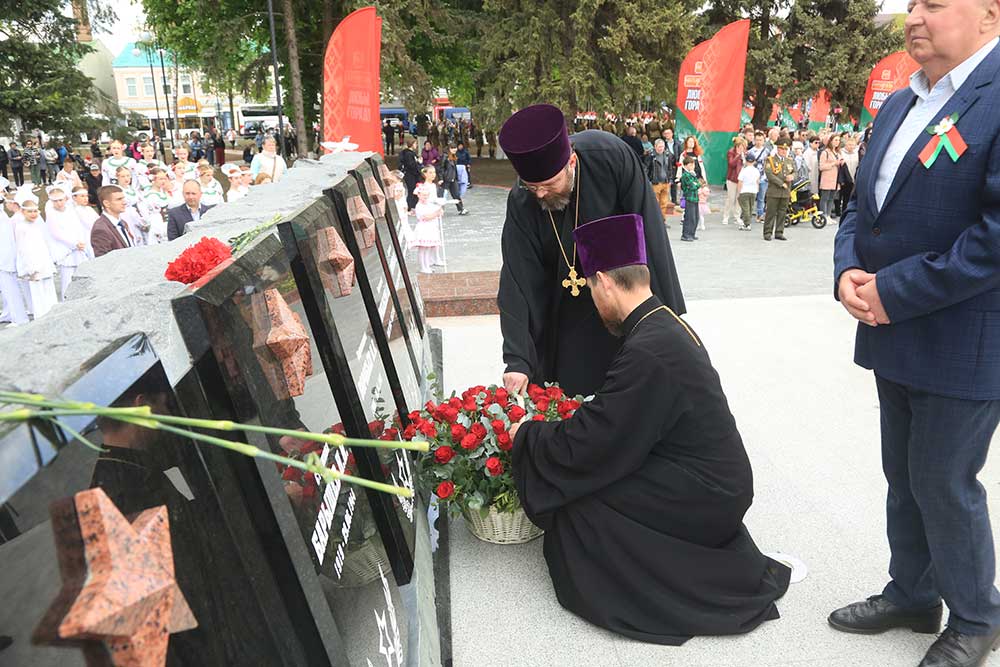 Митрополит Вениамин обратился к присутствующим со словом, в котором поздравил бобруйчан и гостей города с 80-летием Великой Победы, после чего вознес молитву о погибших в годы войны.