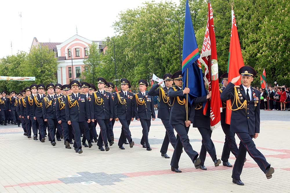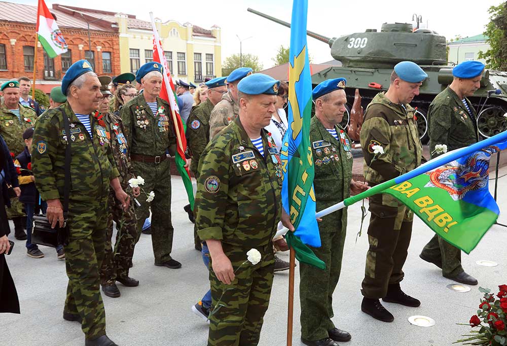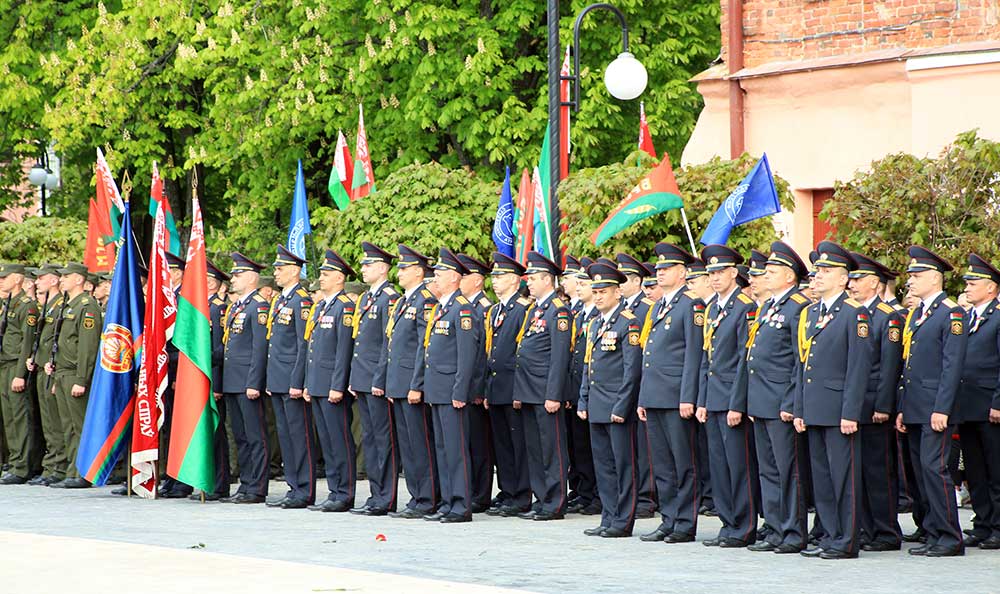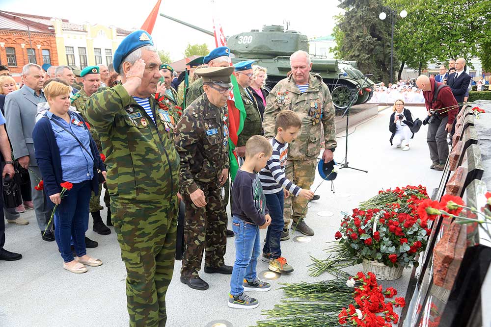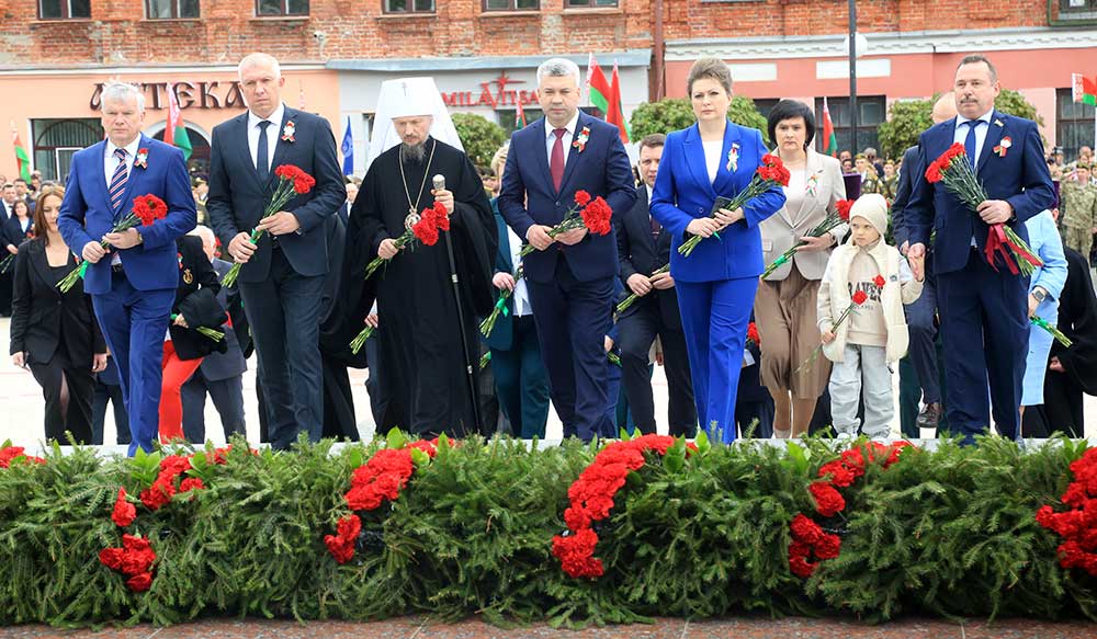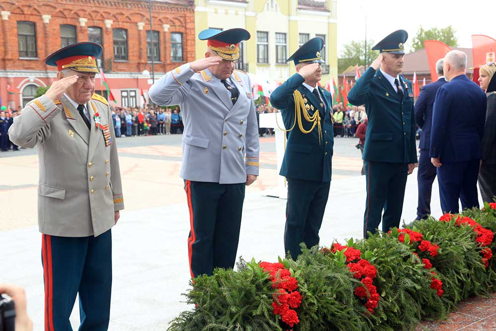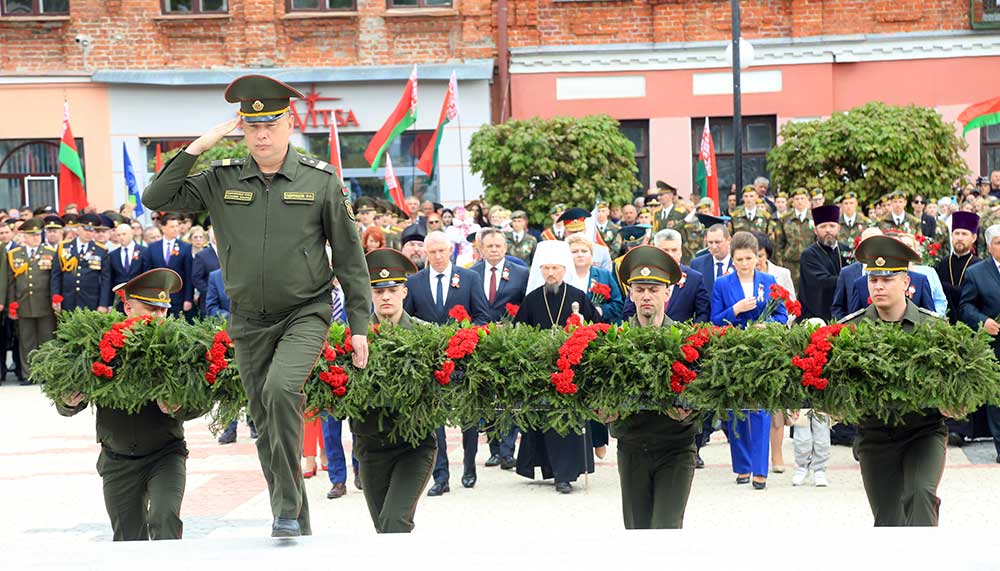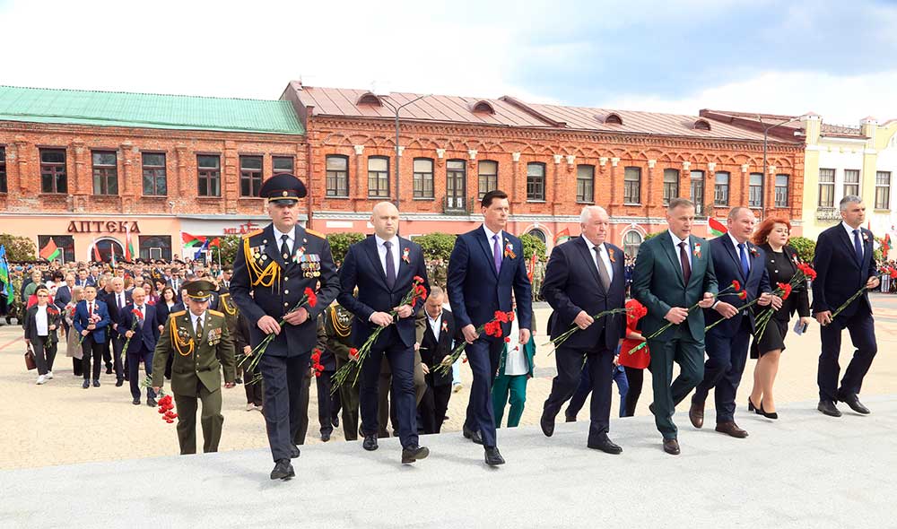 Участники торжественной церемонии почтили память погибших минутой молчания, возложили цветы к монументу танка Бахарова, Аллеи Героев и памятному знаку бобруйчанам, погибшим в годы Великой Отечественной войны. В завершение по площади Победы торжественным маршем прошли коробки войск Бобруйского гарнизона, МЧС, милиции, патриотических и кадетских классов, учащихся.