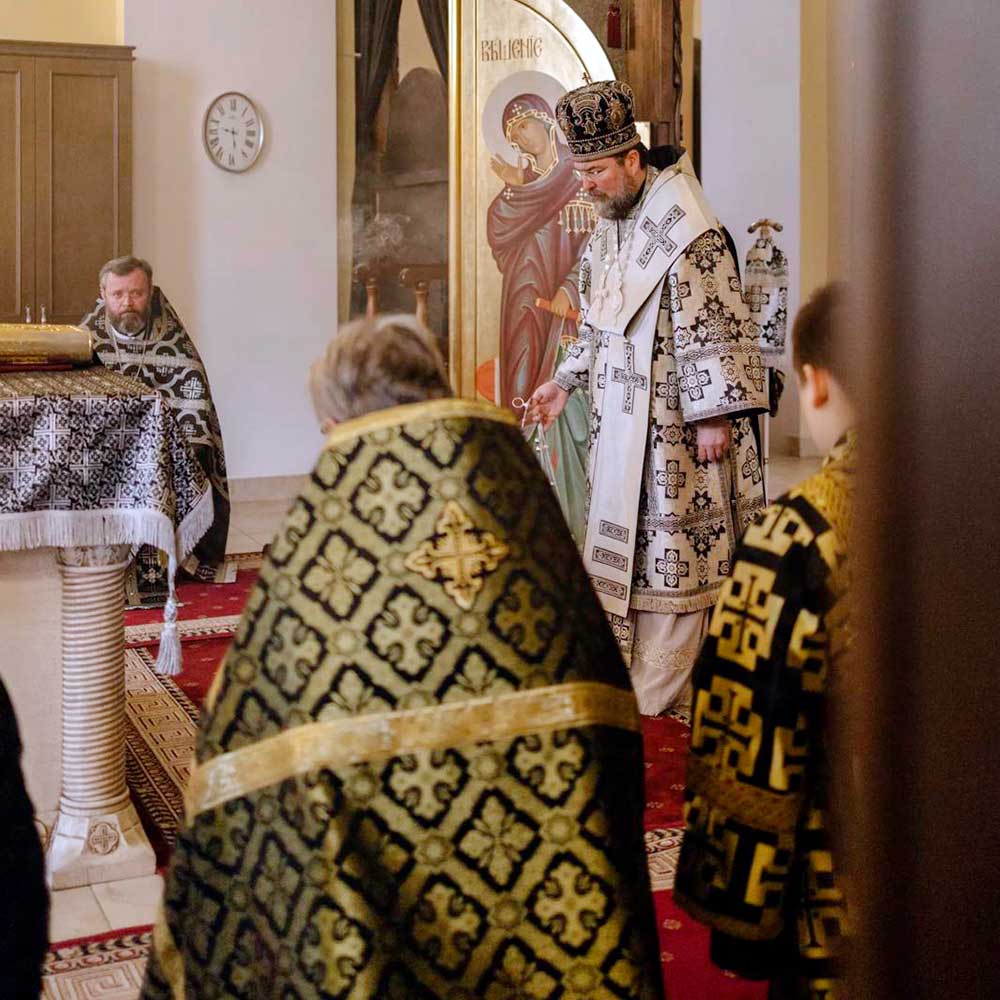 13 марта 2026 года, в пятницу 3-й седмицы Великого поста, день памяти преподобного Василия исповедника, Преосвященнейший Серафим, епископ Бобруйский и Быховский, совершил вечерню с Литургией Преждеосвященных Даров в Никольском кафедральном соборе г. Бобруйска.