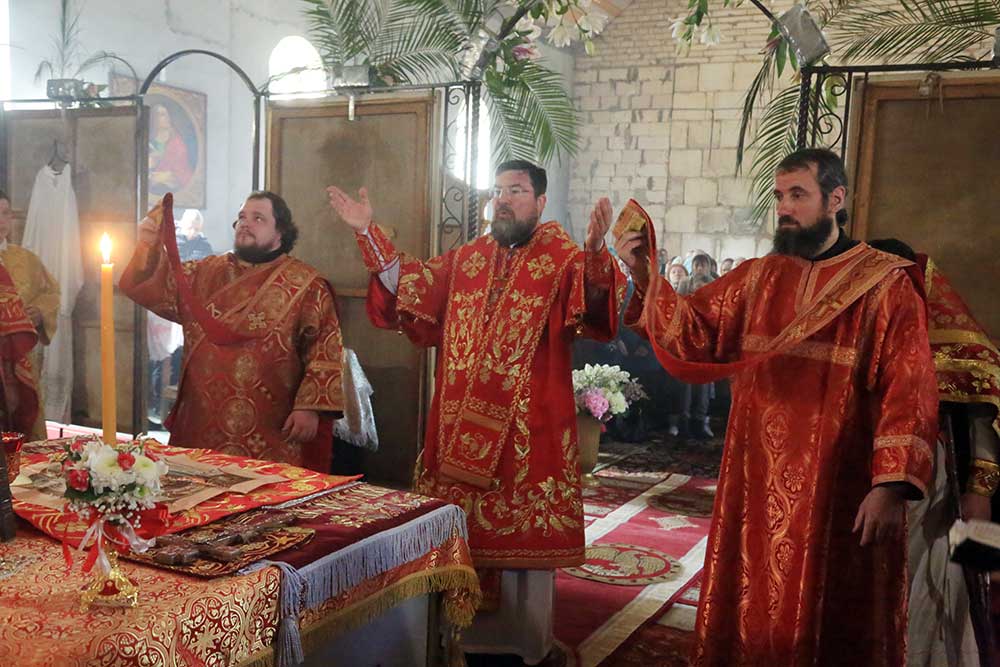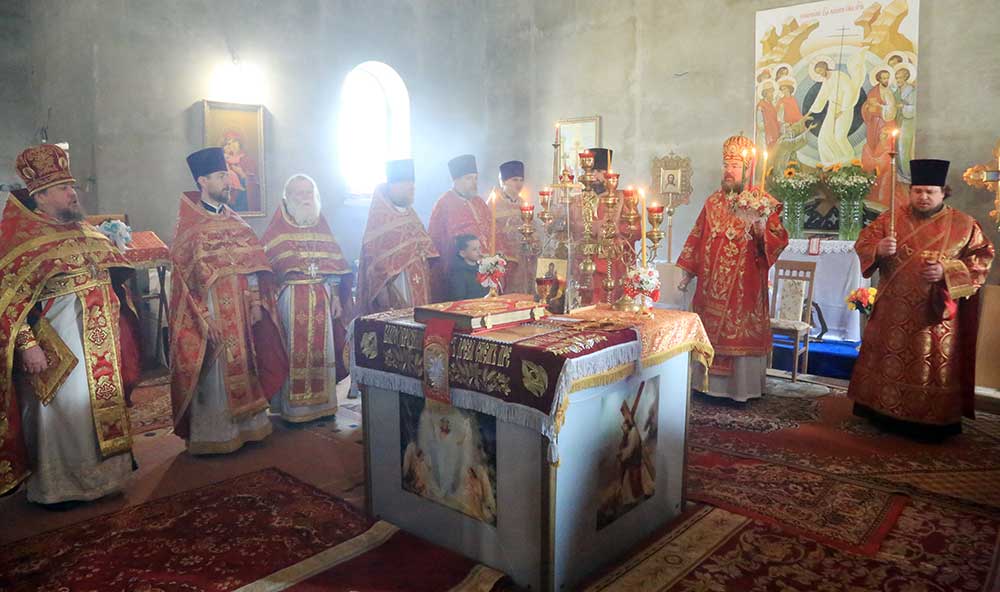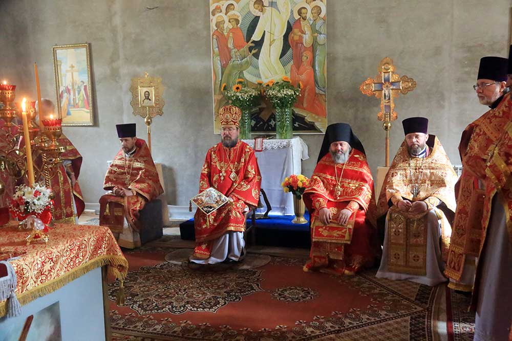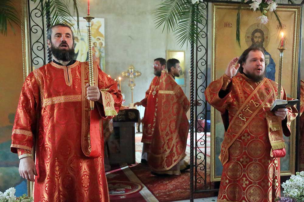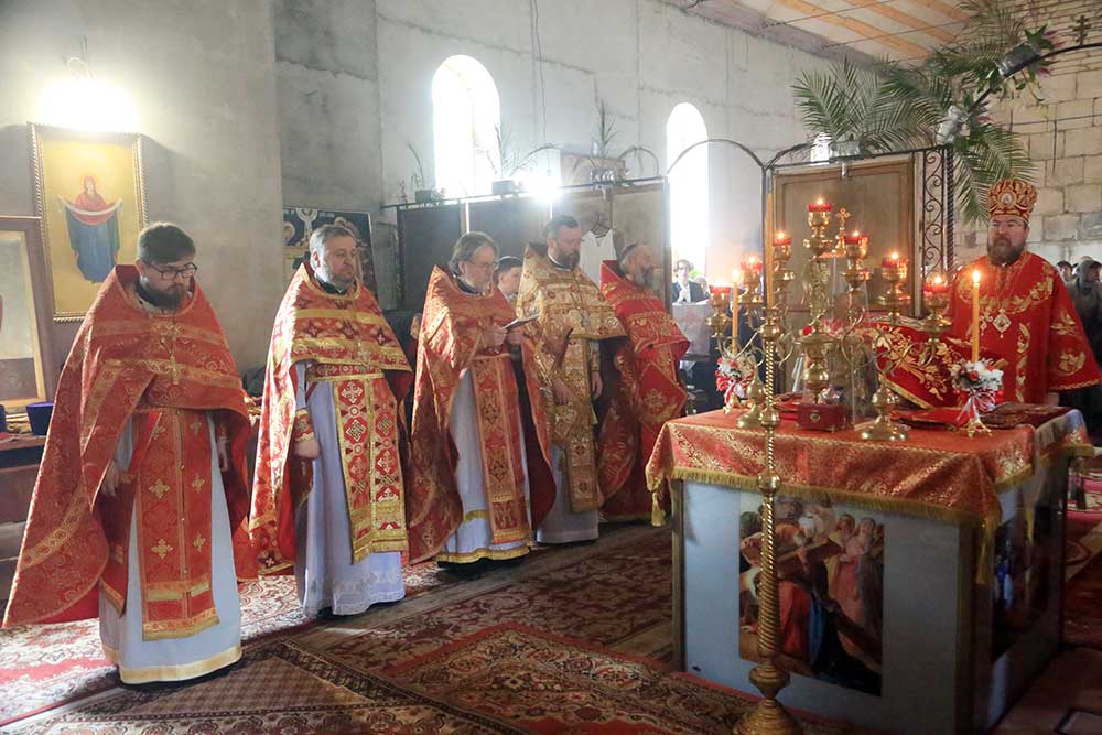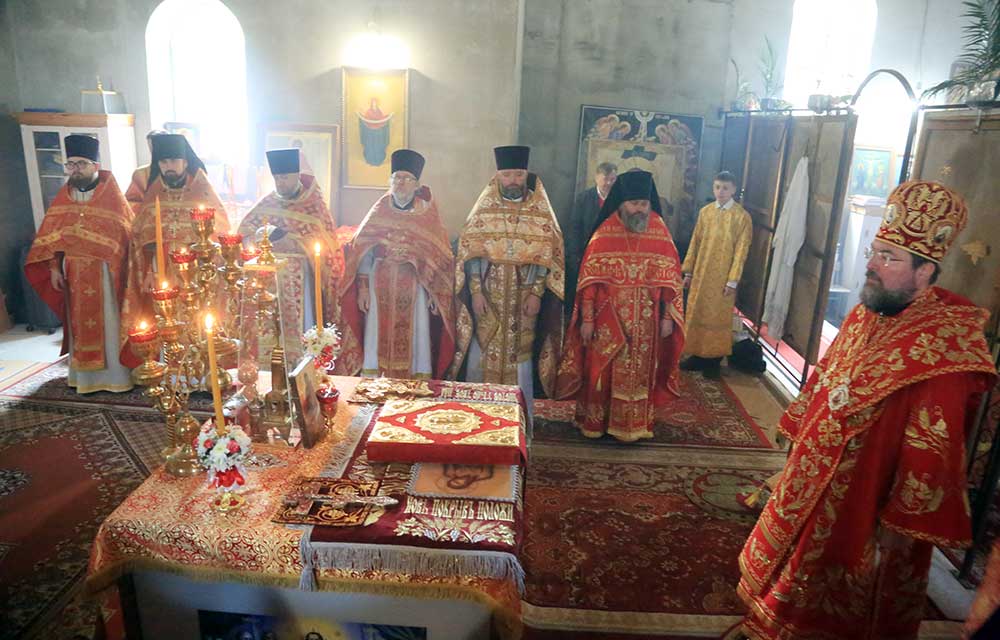 Его Преосвященству сослужили настоятель монастыря игумен Максим (Юндил), секретарь Бобруйского епархиального управления протоиерей Сергий Коровинский, благочинный Осиповичского районного округа протоиерей Василий Белоус, благочинный Бобруйского городского округа иерей Сергий Гусар, благочинный Кличевского районного округа протоиерей Сергий Андреев, настоятель храма великомученика Георгия Победоносца аг. Залужье Стародорожского района (Слуцкая епархия) протоиерей Александр Пигаль, настоятель Николо-Софийского храма г. Бобруйска протоиерей Димитрий Баркарь, настоятель храма святых мучениц Веры, Надежды, Любови и матери их Софии аг. Пасека Стародорожского района (Слуцкая епархия) иерей Александр Понтус, настоятель храма преподобной Евфросинии Полоцкой г. Бобруйска иерей Никита Баскаков, клирик Ильинского храма г. Бобруйска иерей Илия Устимчук, братия и гости монастыря в священном сане.