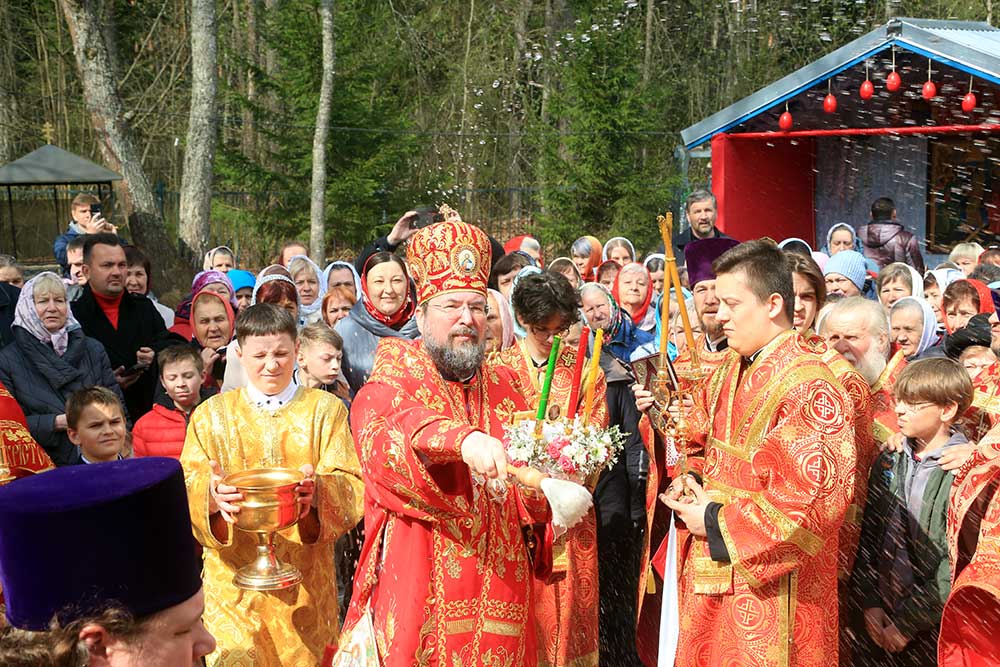 Епископ Серафим обратился к собравшимся верующим с архипастырским словом: «Христос Воскресе! Поздравляю вас, дорогой отец Максим, дорогие отцы, братия и сестры, с праздником иконы Божией Матери «Живоносный Источник», с Праздником Пасхи Христовой, который у нас продолжается.
