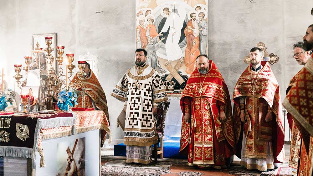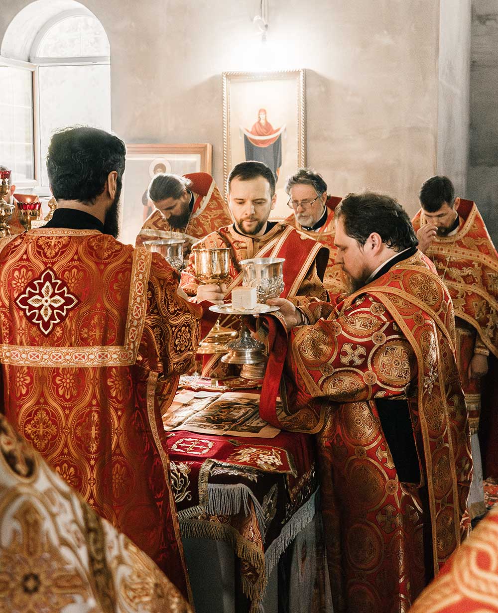 Его Преосвященству сослужили настоятель монастыря игумен Максим (Юндил), секретарь Бобруйского епархиального управления протоиерей Сергий Коровинский, благочинный Осиповичского районного округа протоиерей Василий Белоус, благочинный Бобруйского городского округа иерей Сергий Гусар, благочинный Кличевского районного округа протоиерей Сергий Андреев, настоятель храма великомученика Георгия Победоносца аг. Залужье Стародорожского района (Слуцкая епархия) протоиерей Александр Пигаль, клирик храма великомученика Георгия Победоносца г. Барановичи (Пинская епархия), преподаватель Минской духовной академии иерей Владимир Грицевич, духовенство Бобруйской епархии, братия монастыря в священном сане.