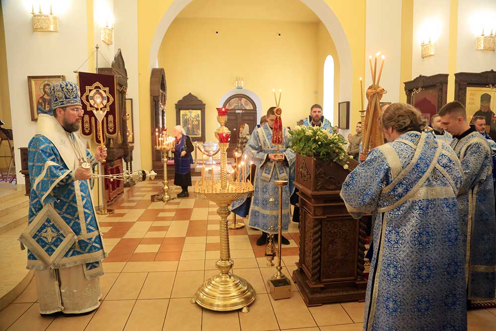 Его Преосвященству сослужили секретарь Бобруйского епархиального управления протоиерей Сергий Коровинский, благочинный Бобруйского районного округа протоиерей Геннадий Вейго, духовенство Бобруйской епархии.
