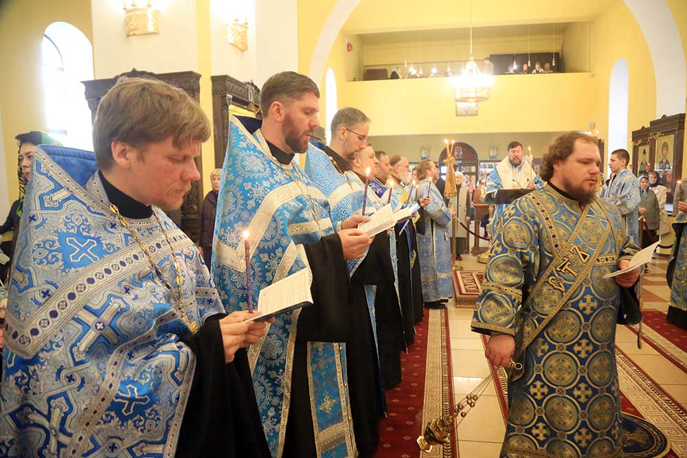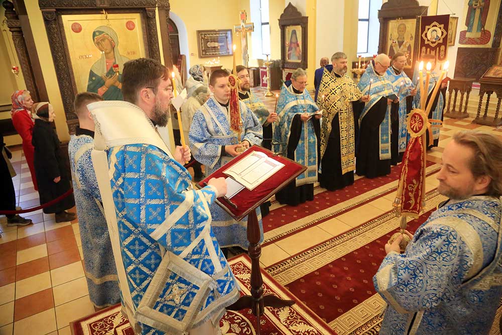 27 марта 2026 года, накануне Субботы Акафиста, праздника Похвалы Пресвятой Богородицы, Преосвященнейший Серафим, епископ Бобруйский и Быховский, совершил утреню с чтением Акафиста Пресвятой Богородице в кафедральном соборе святителя Николая г. Бобруйска.