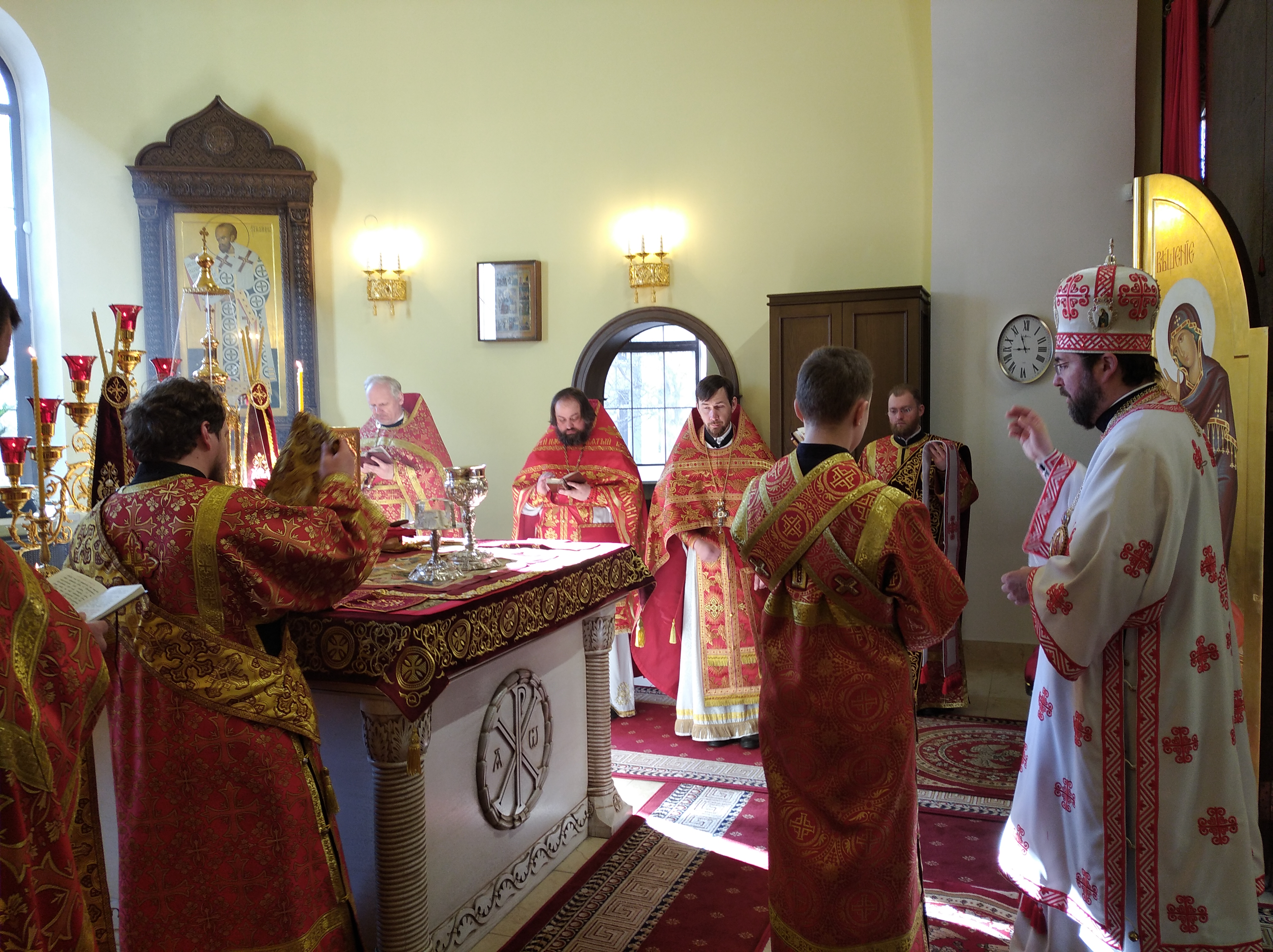 Его Преосвященству сослужили: секретарь Бобруйского епархиального управления, настоятель Иверского храма г. Бобруйска протоиерей Сергий Коровинский; настоятель Никольского кафедрального собора г. Бобруйска иерей Сергий Гусар; настоятель храма в честь иконы Божией Матери «Живоносный Источник» в урочище Проща иеромонах Максим (Юндил); клирики Никольского кафедрального собора — протоиерей Михаил Прокофьев, иерей Алексей Болотов и иерей Алексей Поляков.
