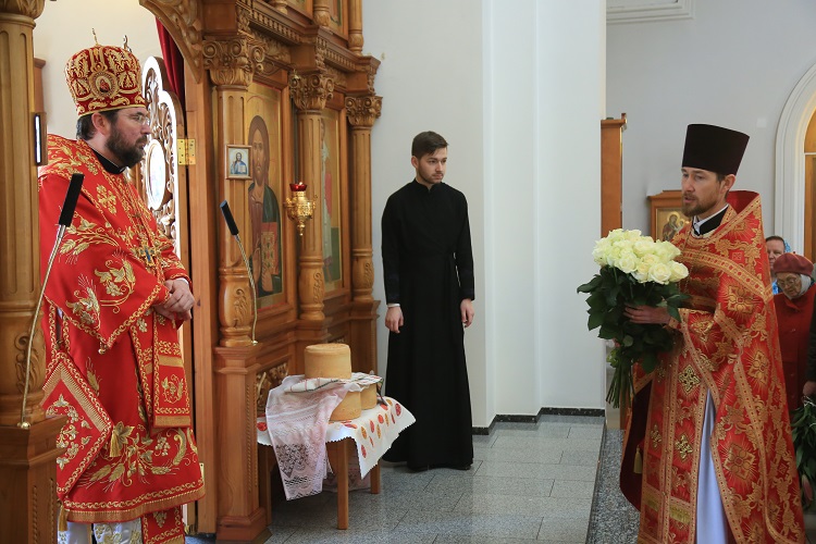 Его Преосвященству сослужили: секретарь Бобруйского епархиального управления, настоятель Иверского храма г. Бобруйска протоиерей Сергий Коровинский и клирики храма — иереи Сергий Гриняк и Артемий Васин.