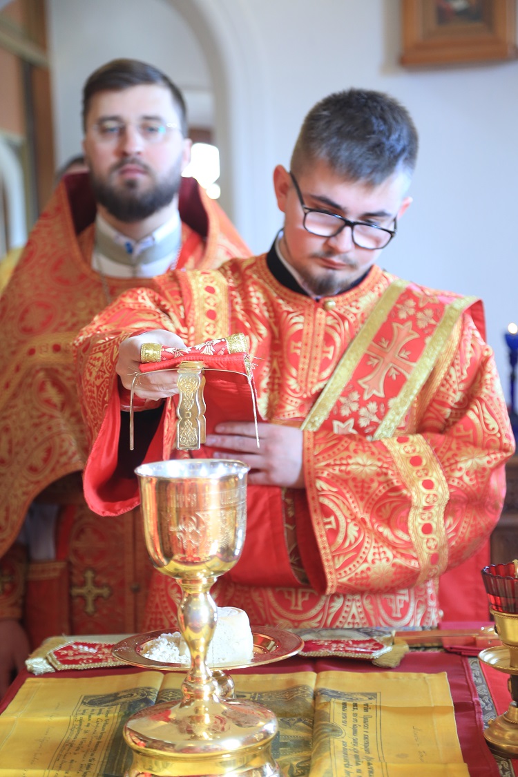 Диаконский чин: клирик Никольского кафедрального собора г. Бобруйска диакон Аркадий Андреев и студент 3-го курса бакалавриата Санкт-Петербургской духовной академии диакон Никита Баскаков.