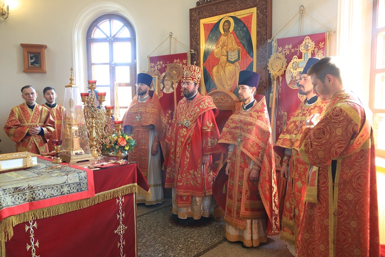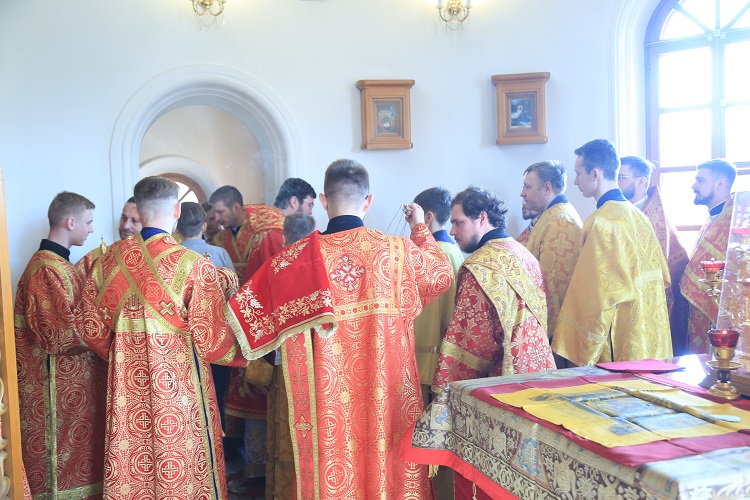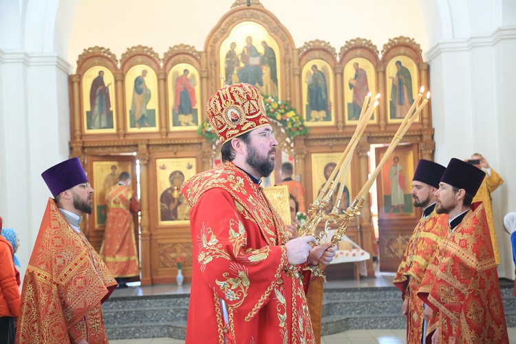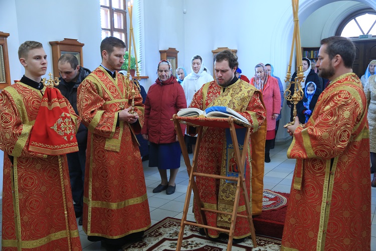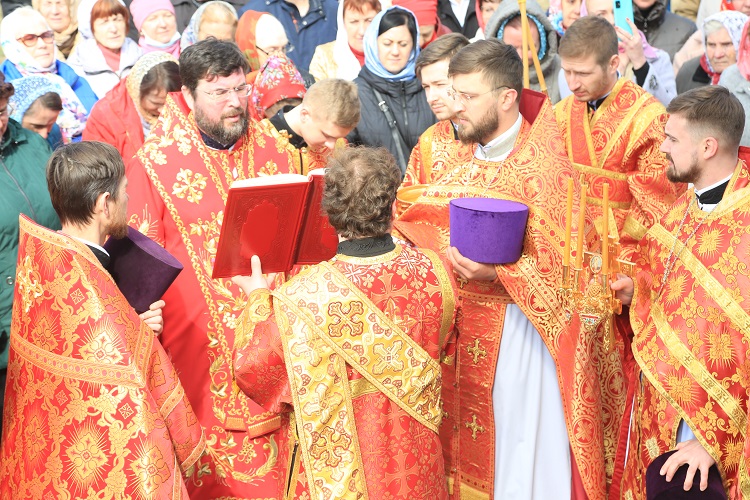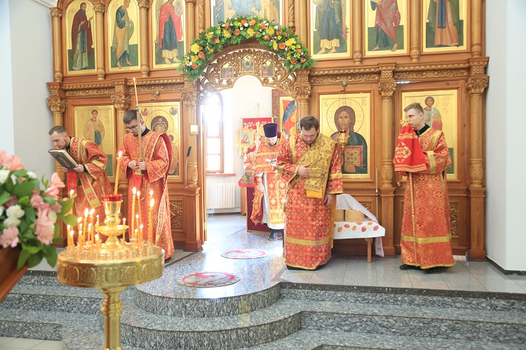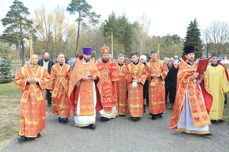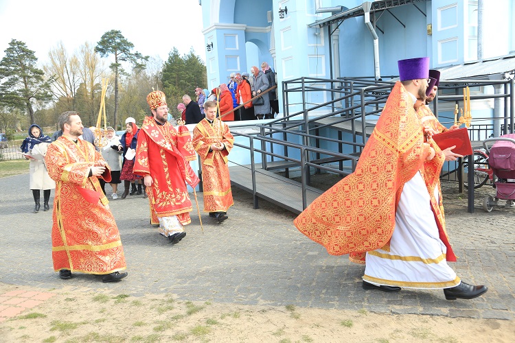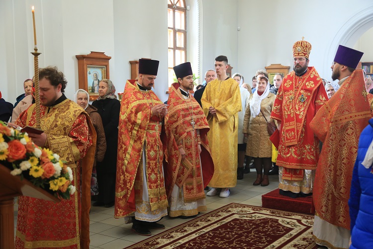 Его Преосвященству сослужили: секретарь Бобруйского епархиального управления, настоятель Иверского храма г. Бобруйска протоиерей Сергий Коровинский и клирики храма — иереи Сергий Гриняк и Артемий Васин.