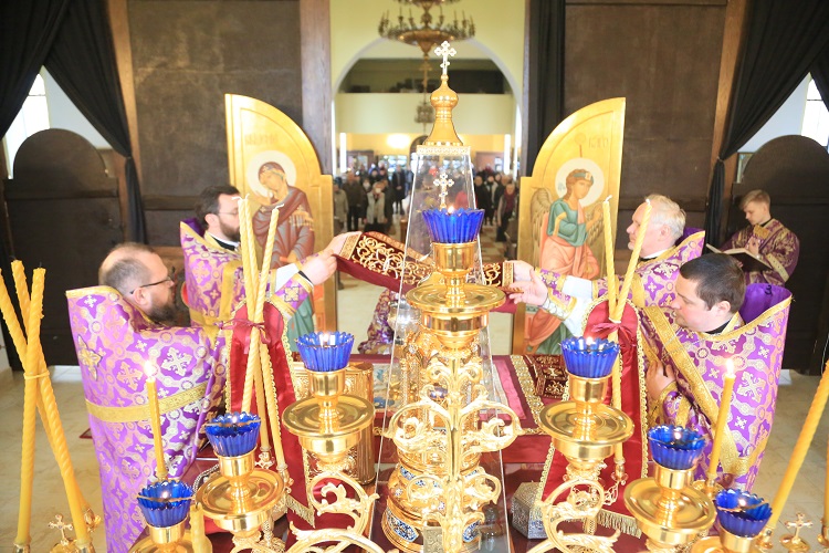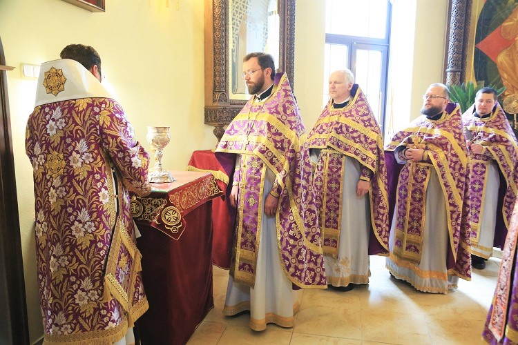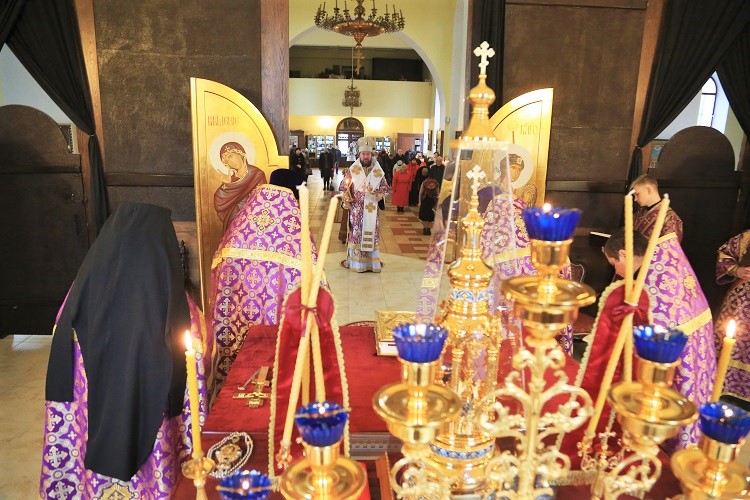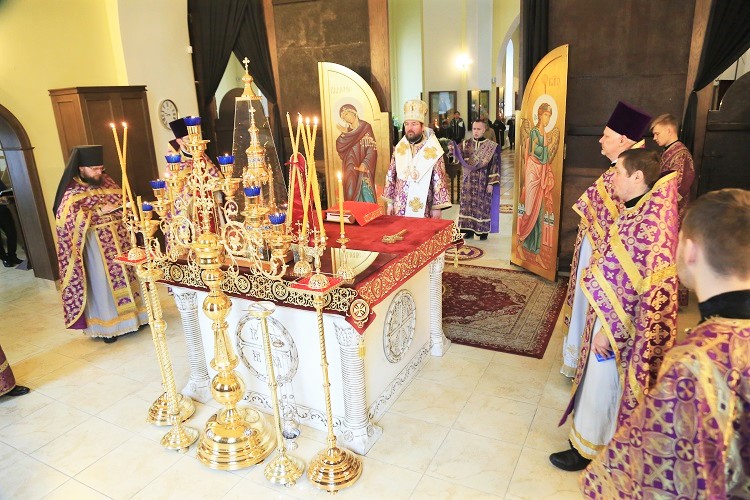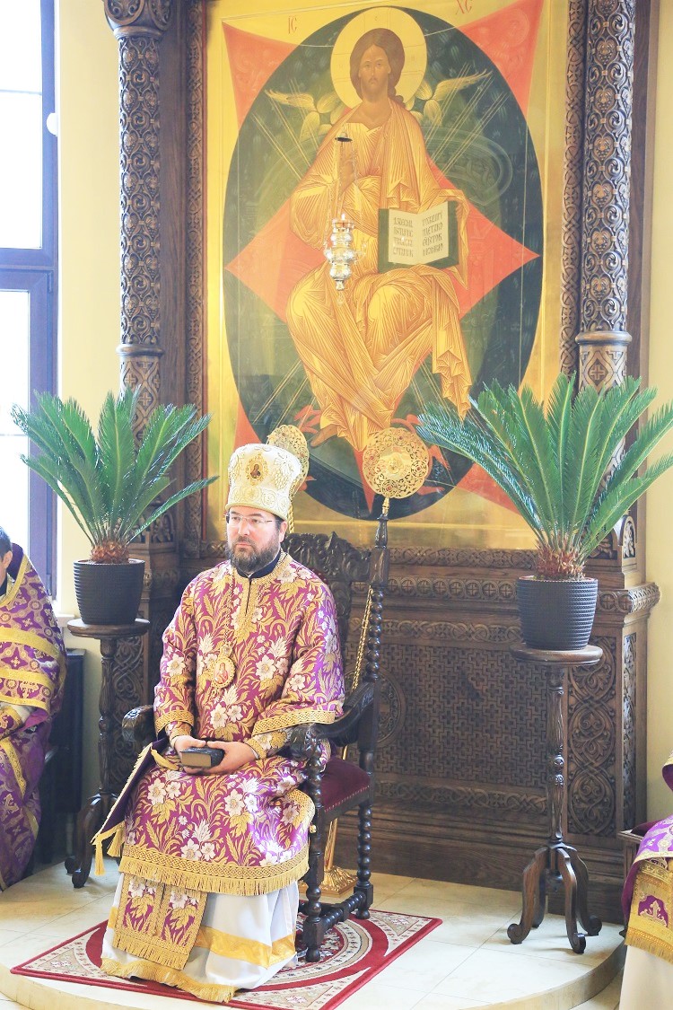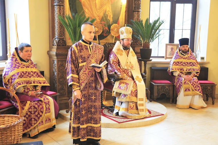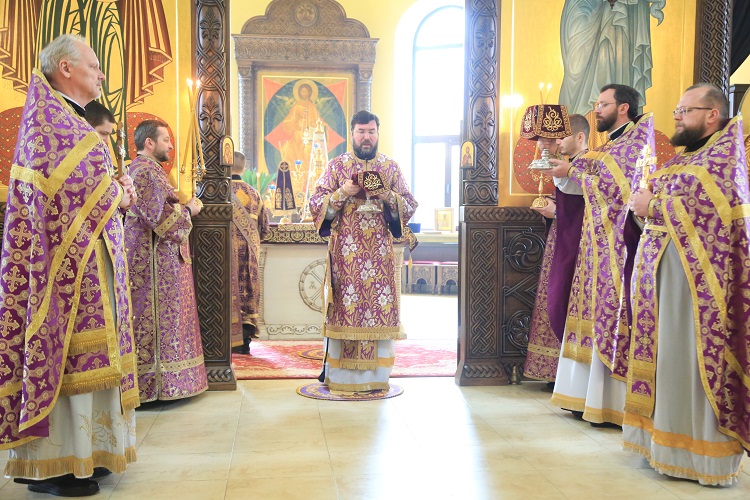 Его Преосвященству сослужили: настоятель Никольского кафедрального собора иерей Сергий Гусар и духовенство собора.