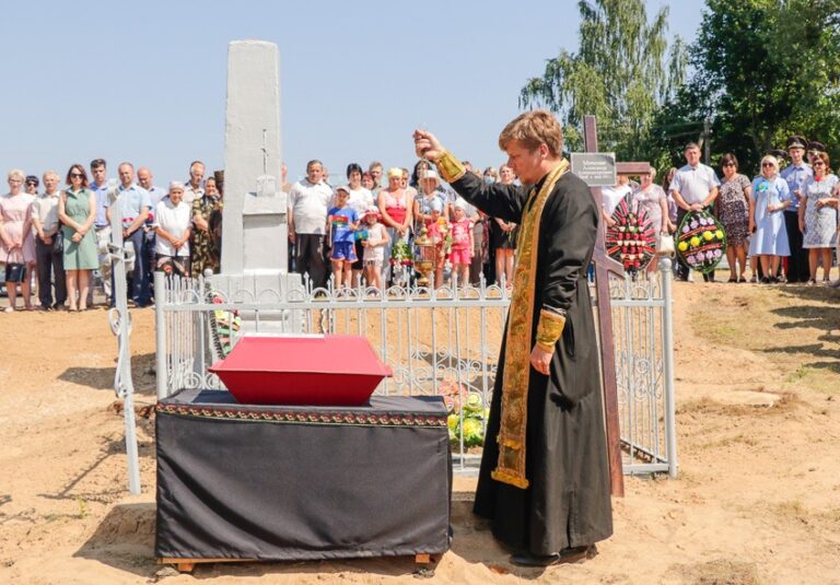 Священник совершил заупокойную литию на месте перезахоронения советского солдата