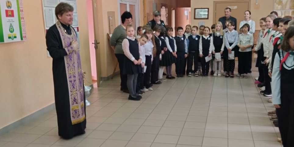 Настоятель храма святых апостолов Петра и Павла аг. Бацевичи иерей Максим Киреев принял участие в линейке по подведению итогов четверти в ГУО «Бацевичская средняя школа».