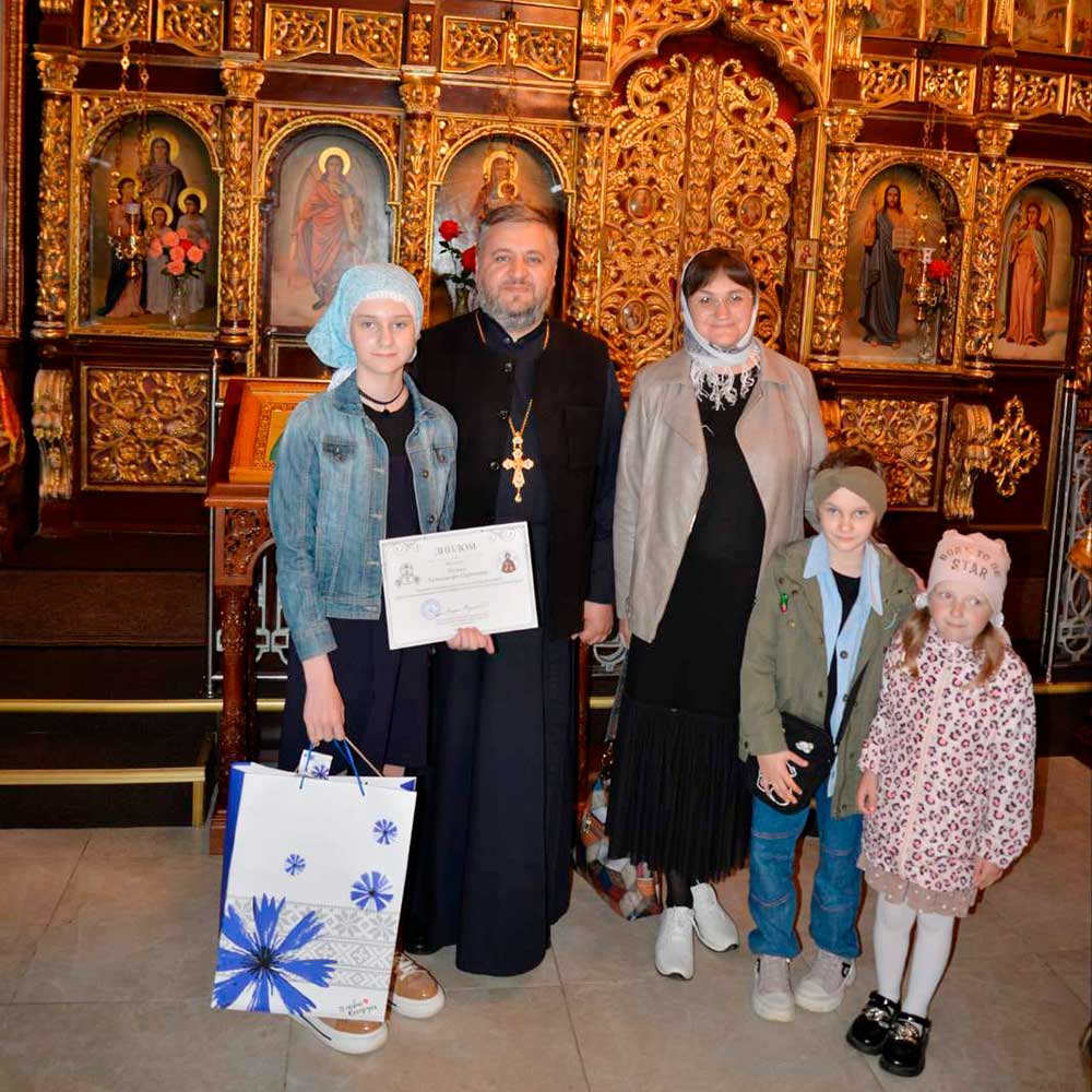 С творческим успехом ее поздравил руководитель отдела религиозного образования и катехизации Бобруйской епархии протоиерей Димитрий Баркарь, настоятель Николо-Софийского храма г. Бобруйска, который вручил диплом и подарки.