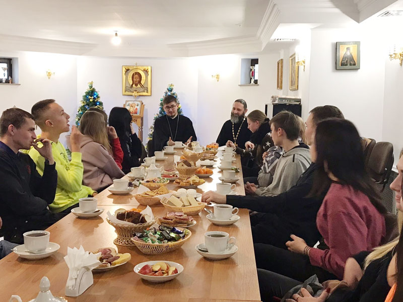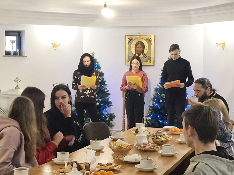 Гости сами подготовили рассказ о празднике Рождества Христова, его смысле и традициях празднования. В общении со священниками храма иеромонахом Андреем (Василюком) и иереем Никитой Баскаковым собравшаяся молодежь имела возможность за чаепитием обсудить услышанный рассказ и задать интересующие вопросы.