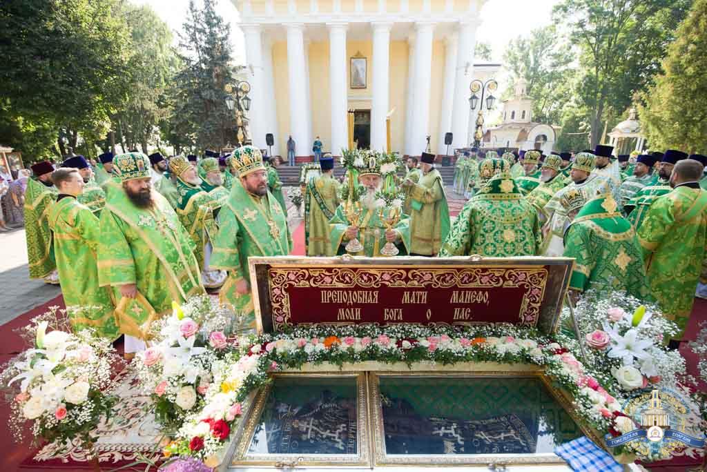 По окончании праздничного богослужения архипастыри, духовенство, сестры и молящиеся прошли крестным ходом вокруг собора, после чего было совершено молебное пение преподобной Манефе Гомельской.