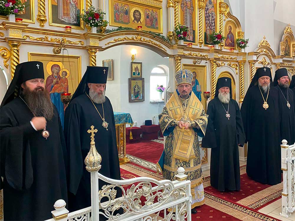 Архипастырям сослужили клирики Борисовской епархии и приглашенные гости в священном сане.