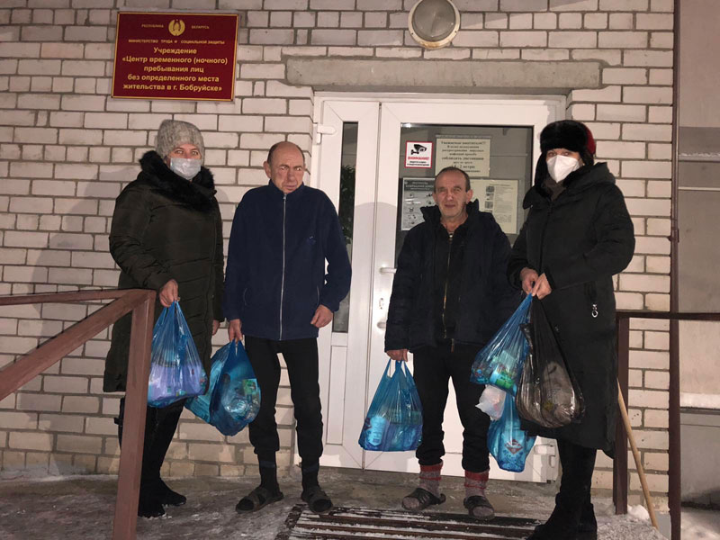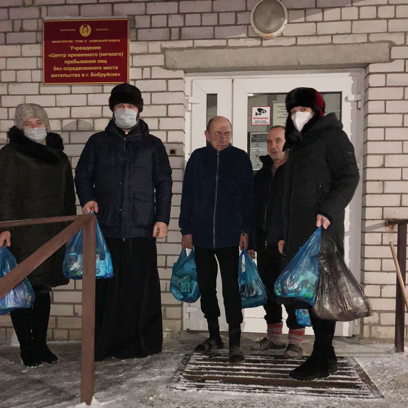 13 января 2021 г. Социальным отделом Бобруйской епархии совместно с сестричеством святой Софии Слуцкой были переданы продуктовые наборы для бездомных, находящихся в «Центре временного (ночного) пребывания лиц без определенного места жительства города Бобруйска, собранные в процессе проведения благотворительной акции «Дари радость на Рождество».