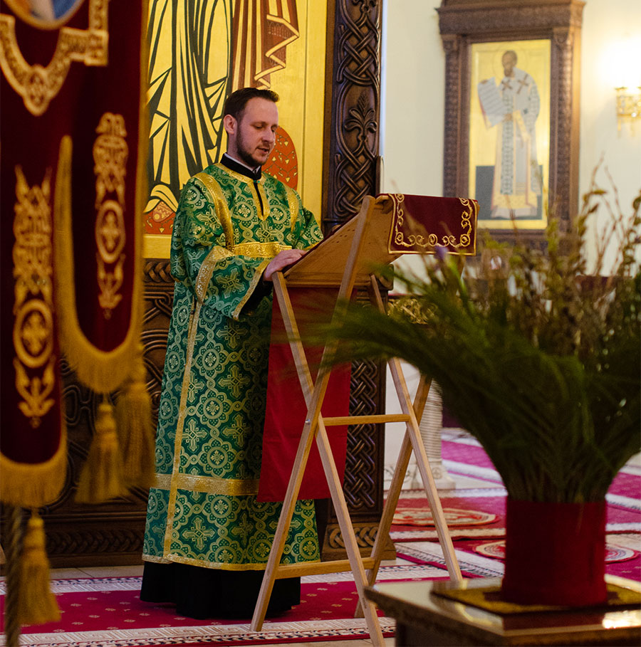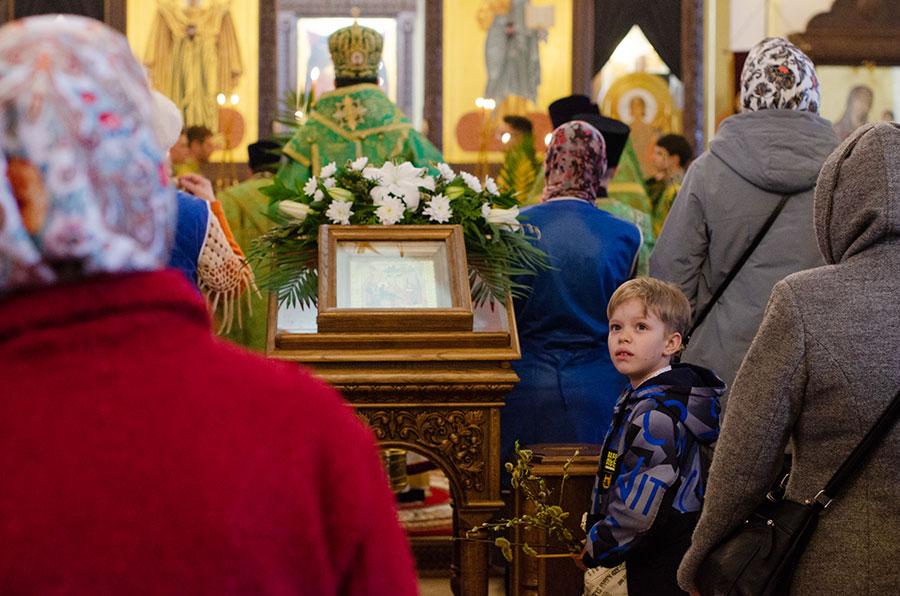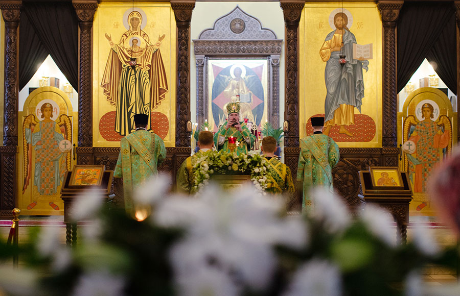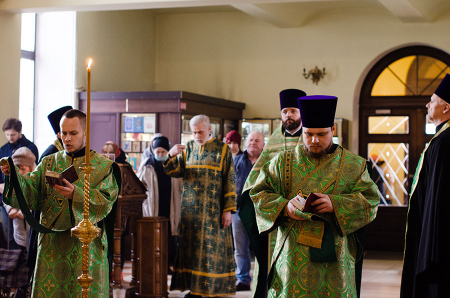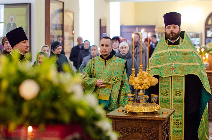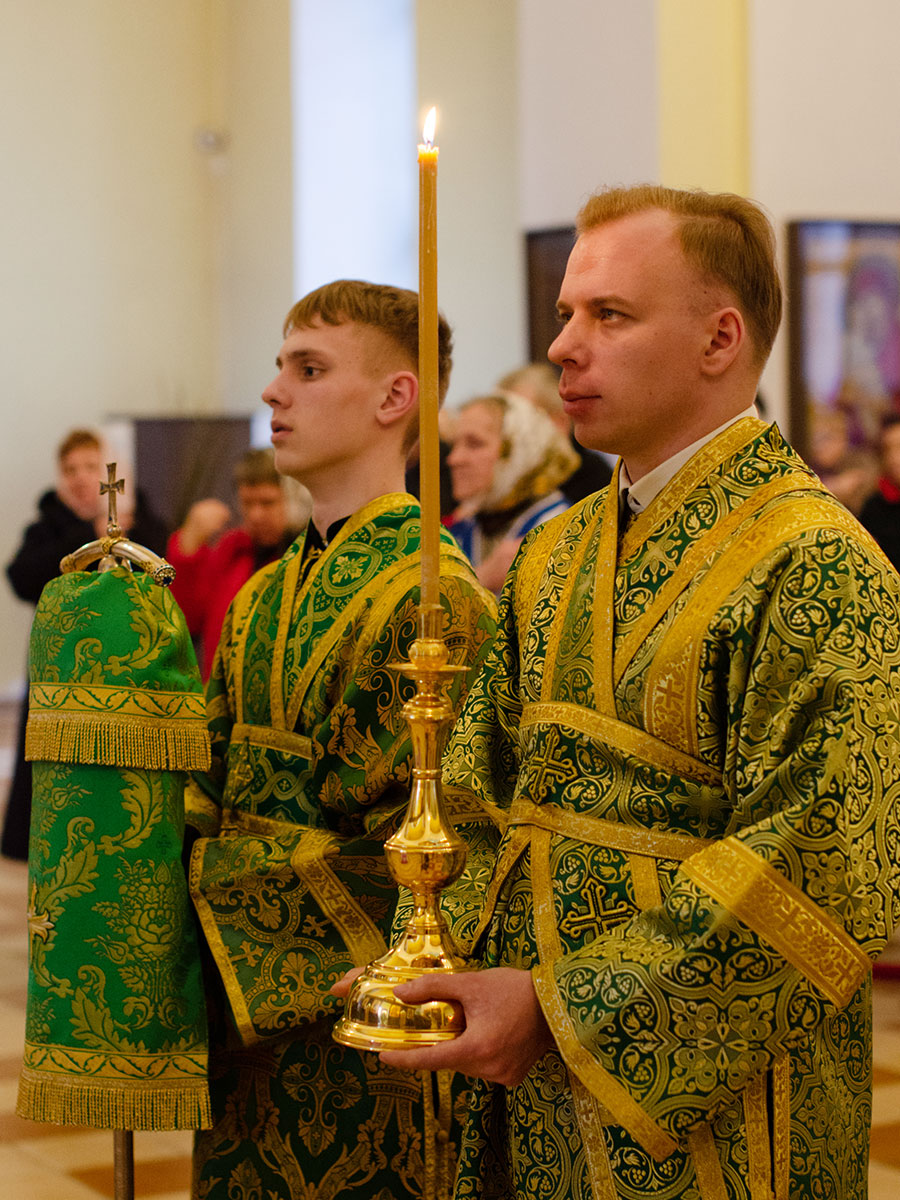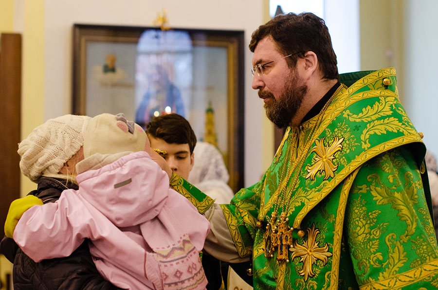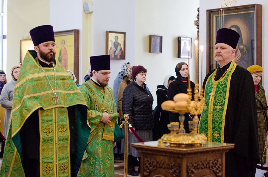 Его Преосвященству сослужили настоятель иерей Сергий Гусар и клирики Никольского собора.