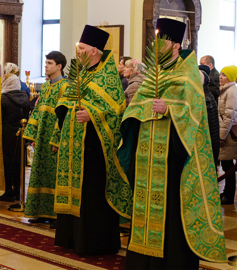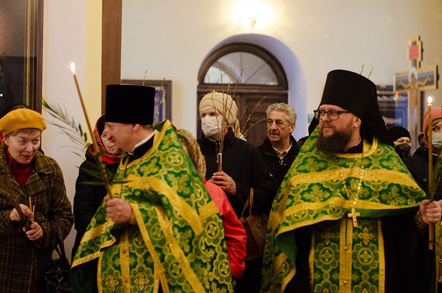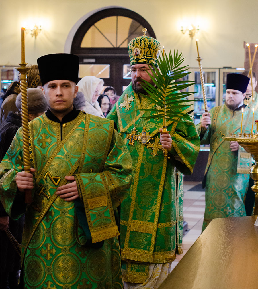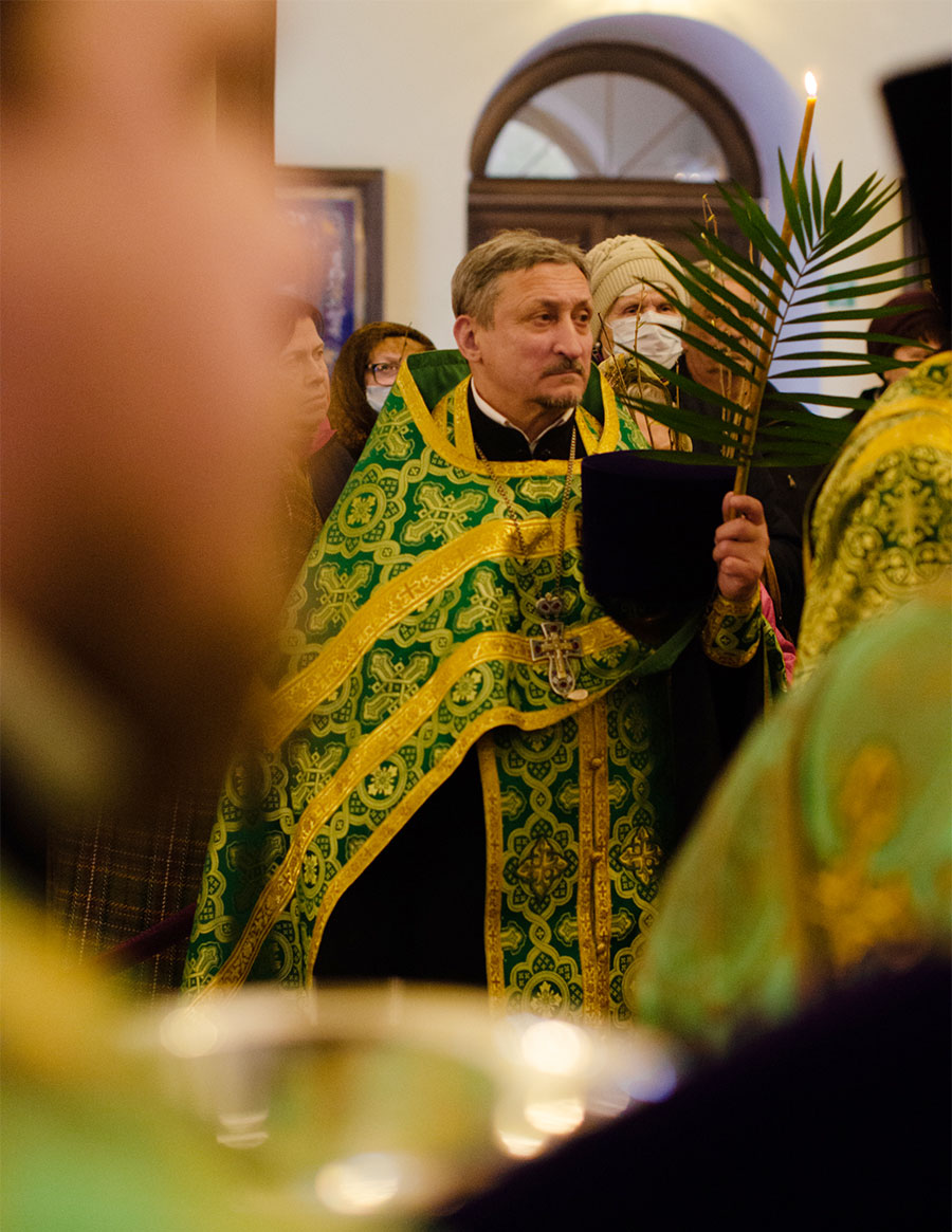 В канун Вербного воскресенья епископ Серафим совершил праздничное вечернее богослужение в Никольском соборе