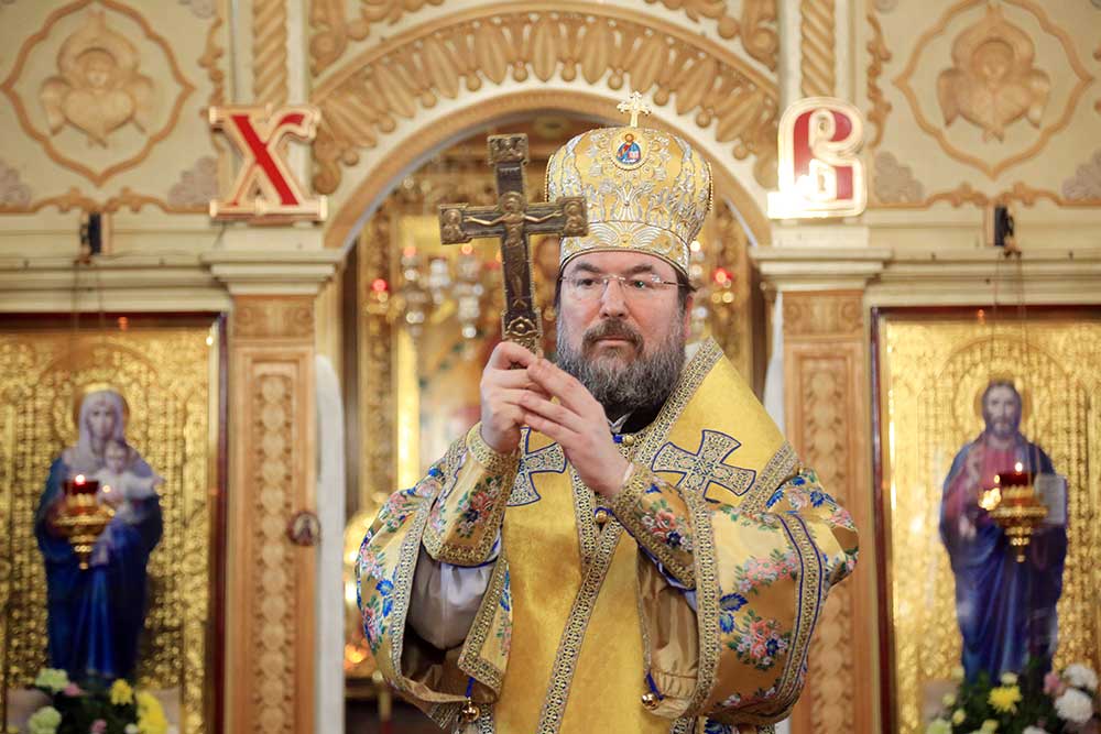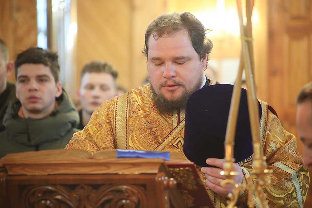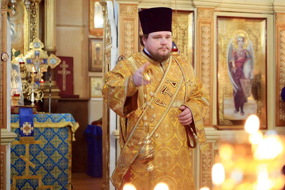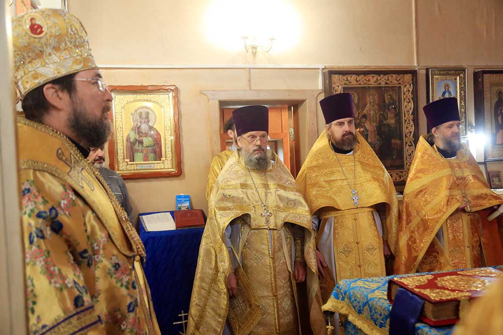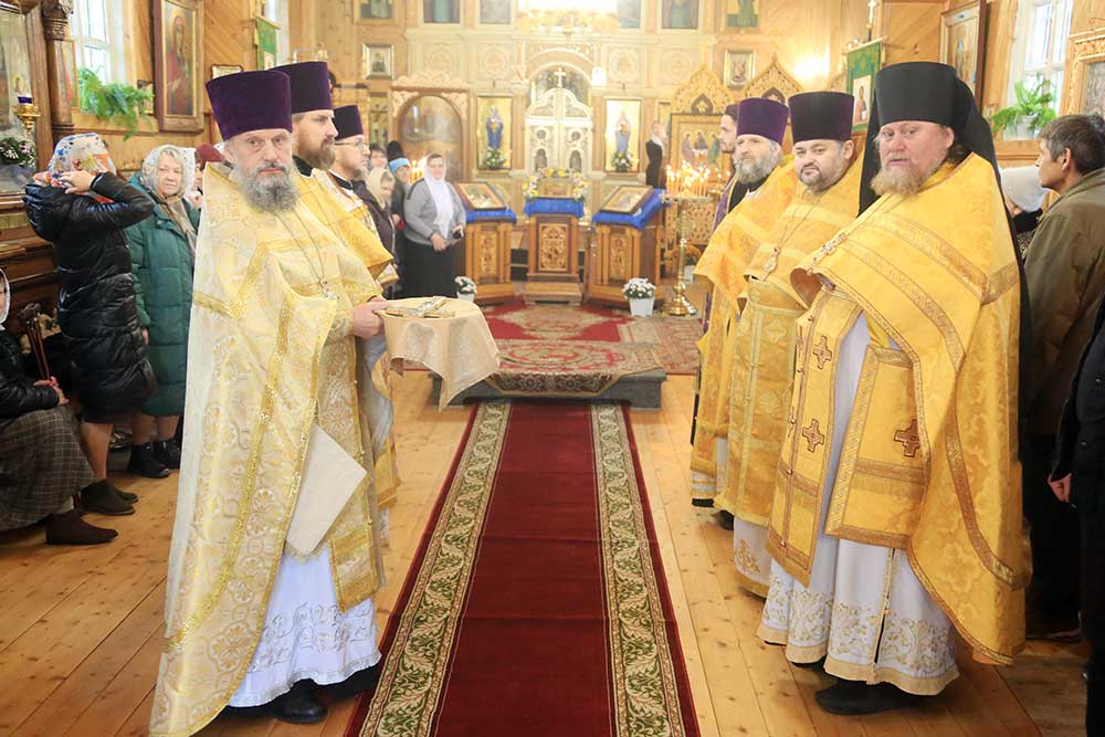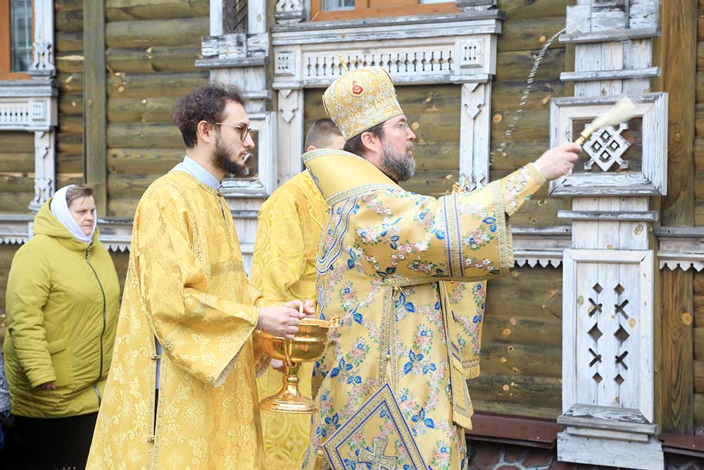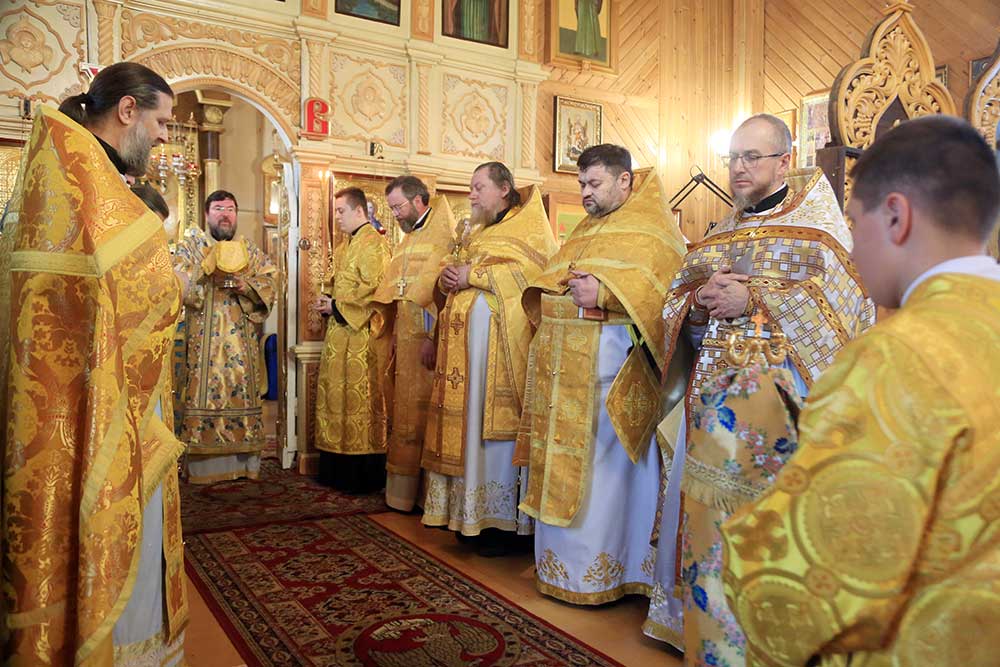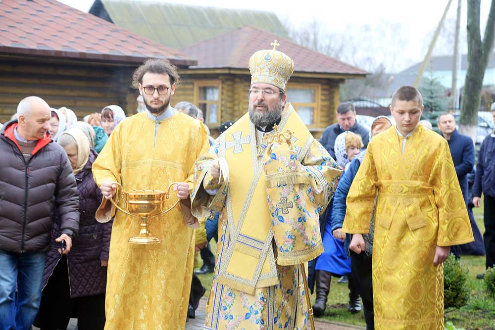 Его Преосвященству сослужили благочинный Бобруйского городского округа иерей Сергий Гусар, настоятель храма протоиерей Александр Киселев, настоятель храма Святой Живоначальной Троицы д. Турки иеромонах Елисей (Николаенко), настоятель храма иконы Божией Матери «Всех скорбящих Радость» г. Осиповичи протоиерей Геннадий Сирошик, настоятель храма Рождества Христова р.п. Елизово протоиерей Андрей Клепча, настоятель Михайловского храма д. Кремок иерей Владимир Яромич, клирик Никольского кафедрального собора г. Бобруйска диакон Аркадий Андреев, гости в священном сане.