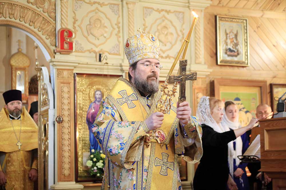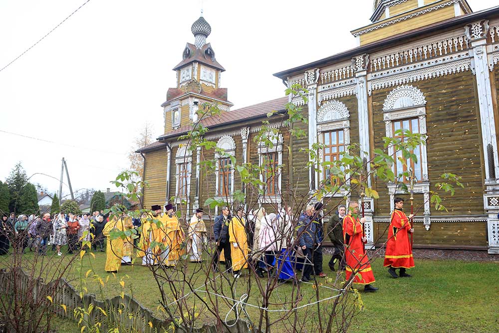 Епископ Серафим обратился к собравшимся верующим с архипастырским словом: «Поздравляю вас с праздником этого храма, очень важного для города Осиповичи и для Осиповичского района. 80 лет назад этот храм был перенесен и воздвигнут здесь, в Осиповичах, в то время, когда вокруг не было ни одного открытого храма. Осиповичский приход был единственным на пол области. Но этот храм был очень нужен живущим здесь людям. И даже советские власти, которые всячески вытесняли Церковь, понимали, что нужна какая-то отдушина, нужен какой-то небольшой храм для такого большого города и важного промышленного центра, как Осиповичи.