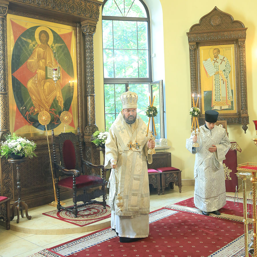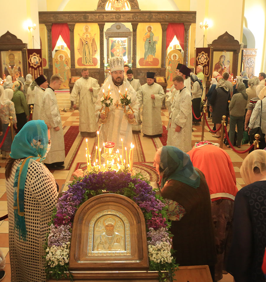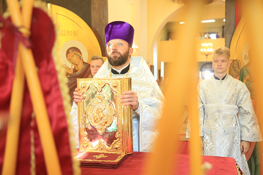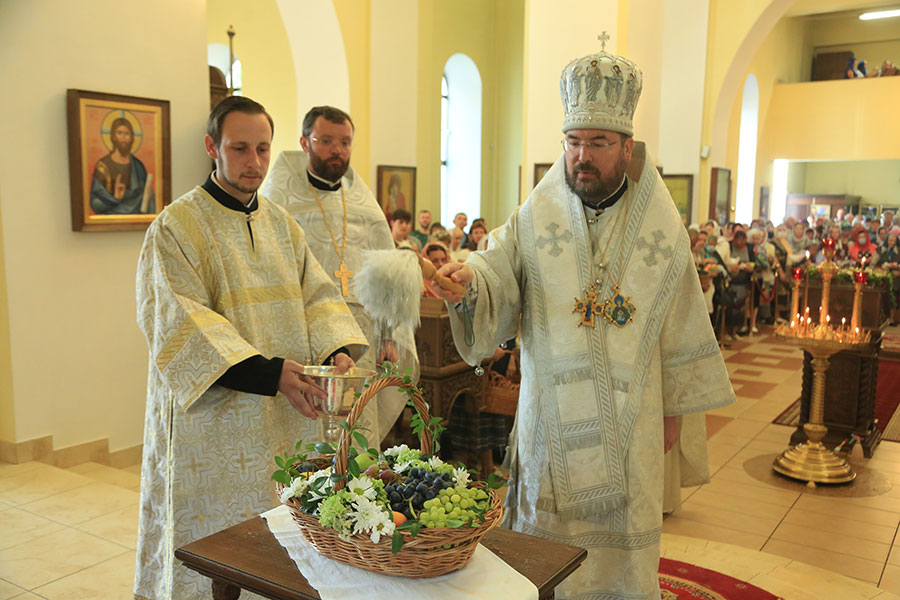 По окончании богослужения епископ Серафим обратился к молящимся со словом проповеди, в котором объяснил собравшимся евангельское чтение дня, совершил освящение плодов нового урожая и преподал архипастырское благословение.