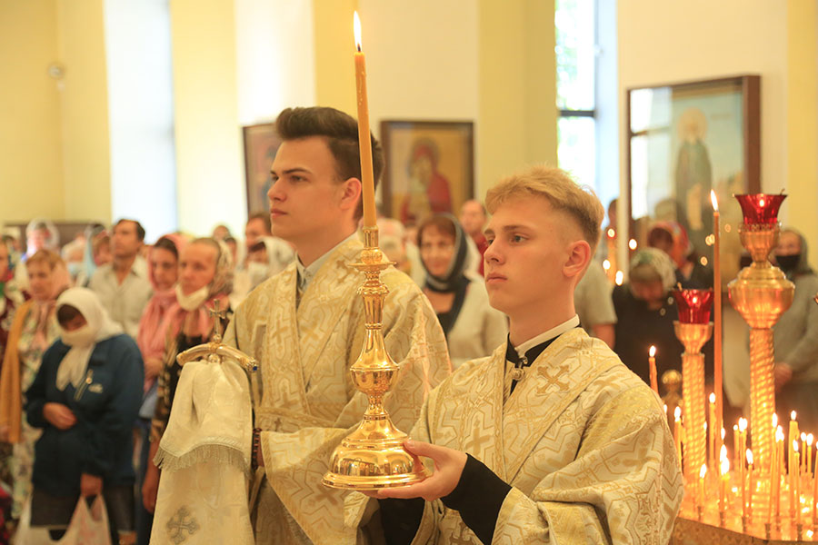 19 августа 2021 года, в четверг седмицы 9-й по Пятидесятнице, Преображение Господа и Бога и Спаса нашего Иисуса Христа, епископ Бобруйский и Быховский Серафим совершил праздничную Божественную литургию в Никольском кафедральном соборе города Бобруйска.