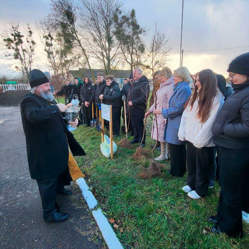Перед началом посадки игумен Максим освятил саженцы и благословил участников на создание сада.