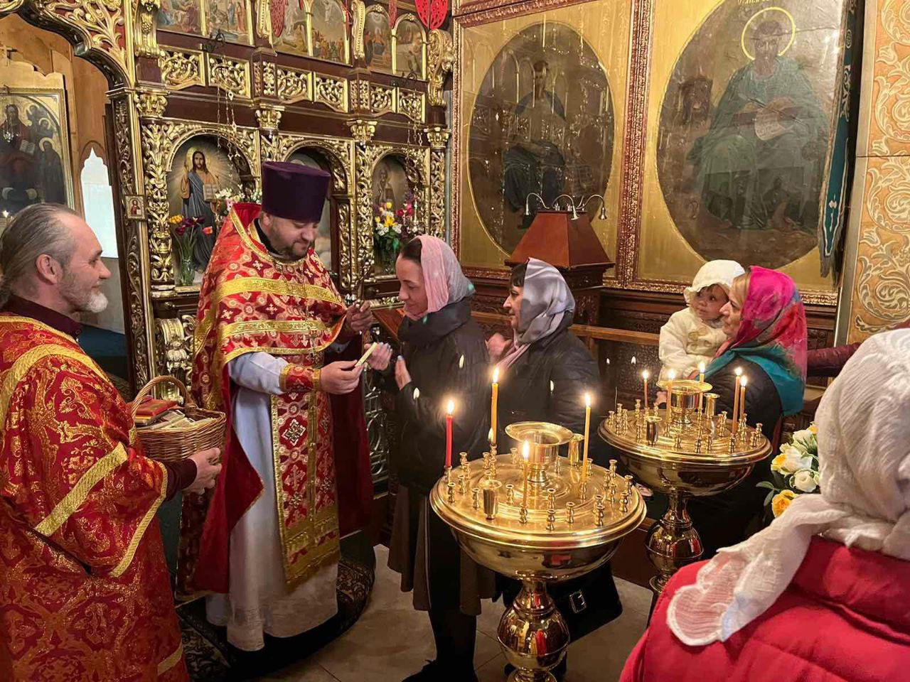 После завершения богослужения состоялся Крестный ход вокруг храма. Протоиерей Дмитрий Баркарь сердечно поздравил прихожан своей дружной общины с праздником одного из святых, которому посвящён храм на Шмидта.