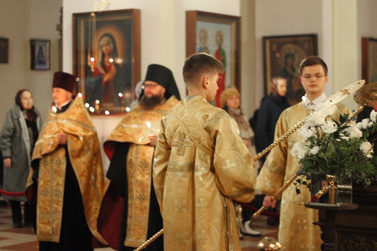 Богослужебные песнопения исполнил хор Никольского кафедрального собора.