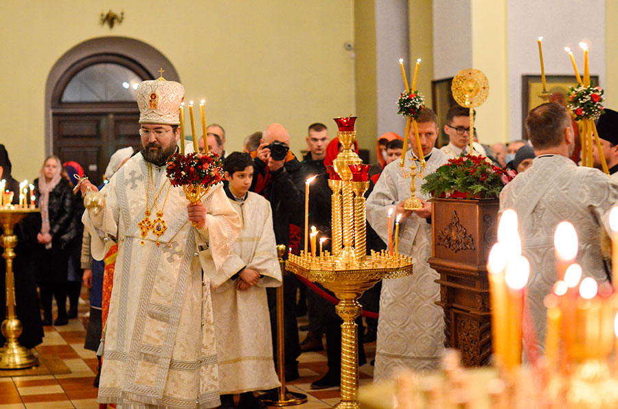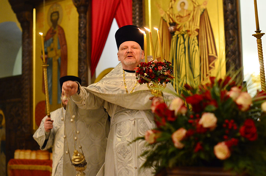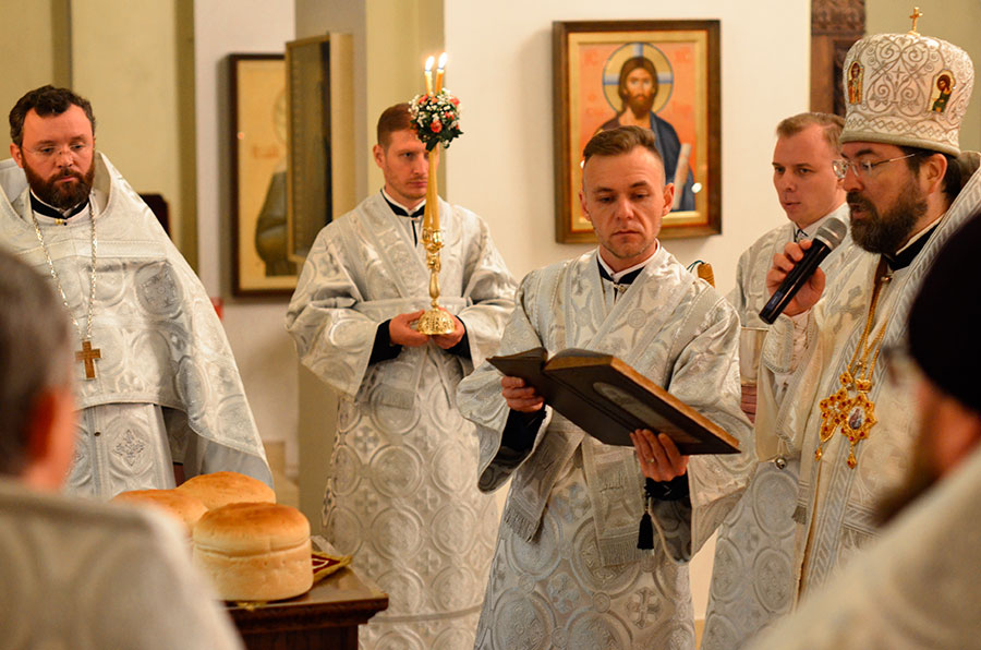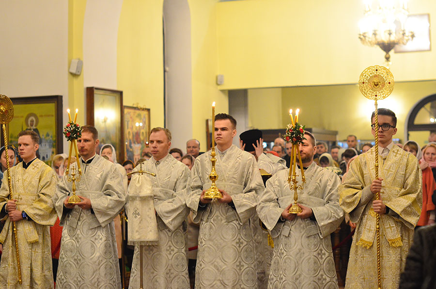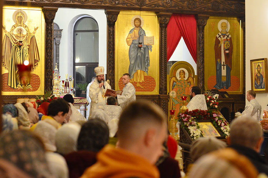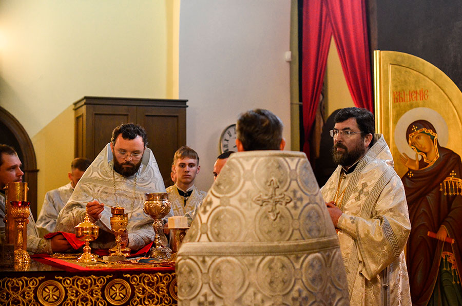 Его Преосвященству сослужили: настоятель Никольского кафедрального собора иерей Сергий Гусар; клирики собора — протоиерей Михаил Прокофьев, иерей Алексей Болотов, иеромонах Димитрий (Мамонов), диакон Павел Журавский и диакон Аркадий Андреев.