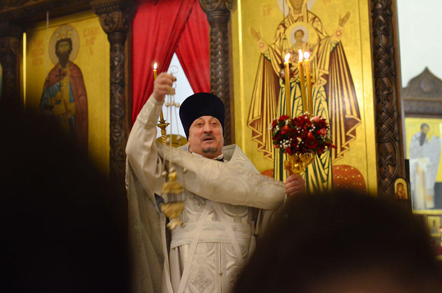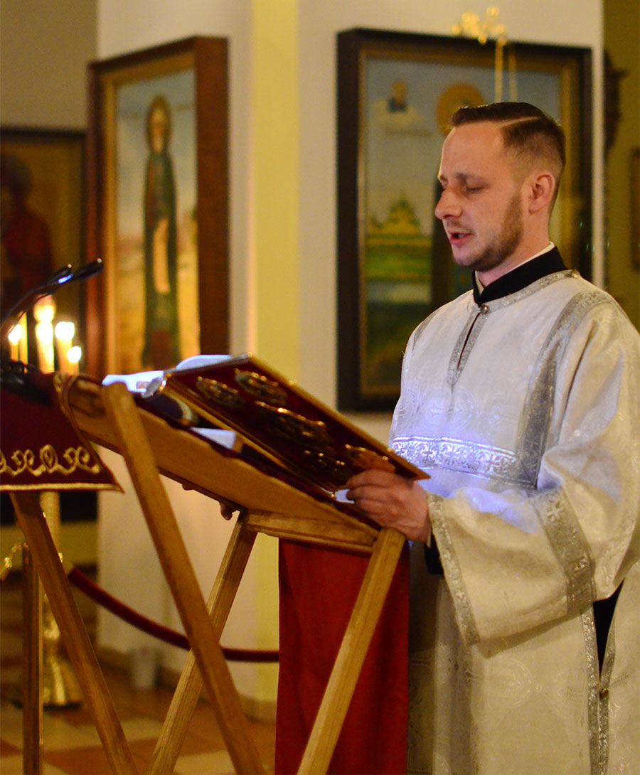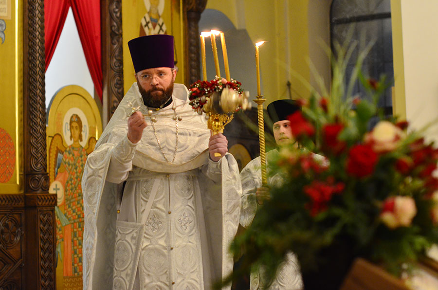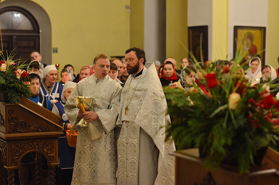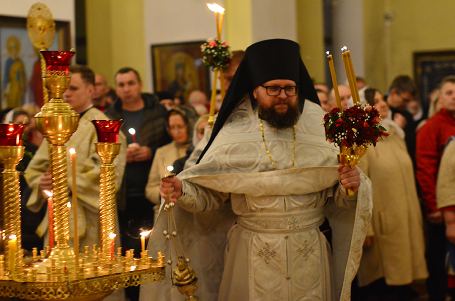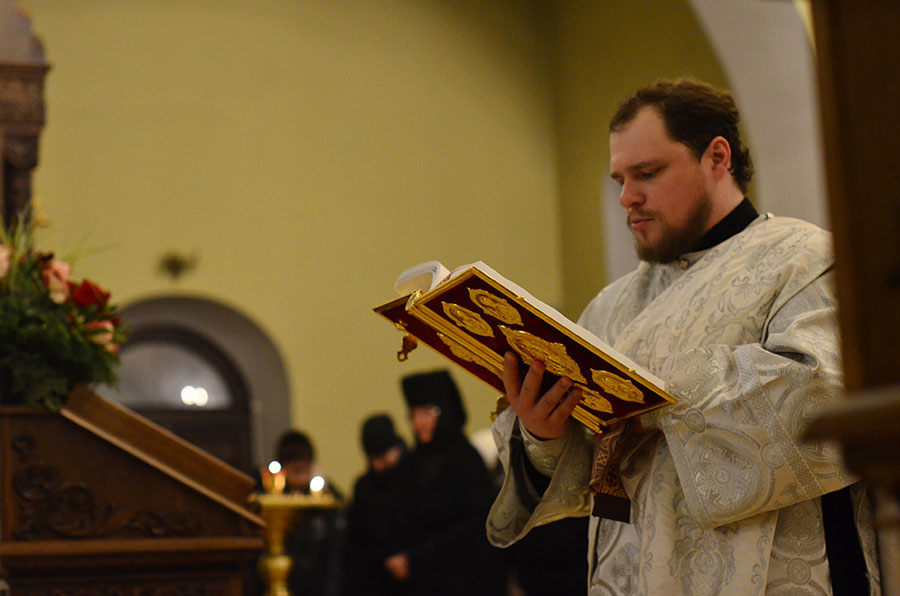 После пения стихир Пасхи Слово огласительное святителя Иоанна Златоуста на Святую Пасху зачитал  протоиерей Михаил Прокофьев.