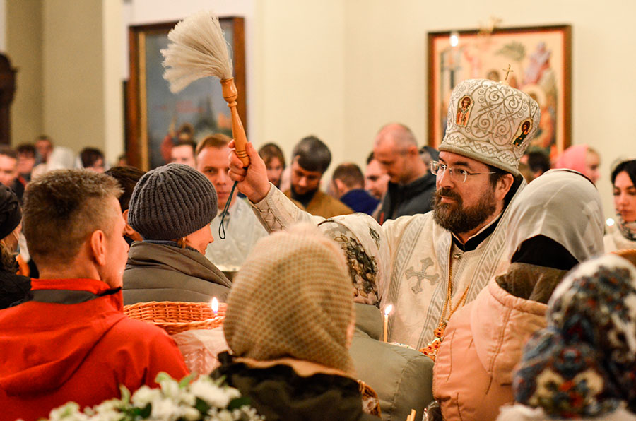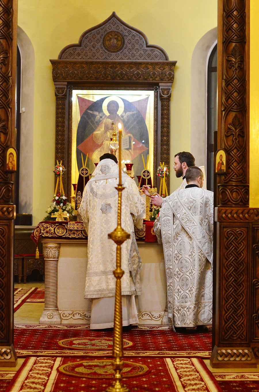 По заамвонной молитве епископ Серафим совершил освящение артоса, а по отпусте Божественной литургии обратился к собравшимся с архипастырским словом, в котором тепло поздравил молящихся с праздником Светлого Христова Воскресения.