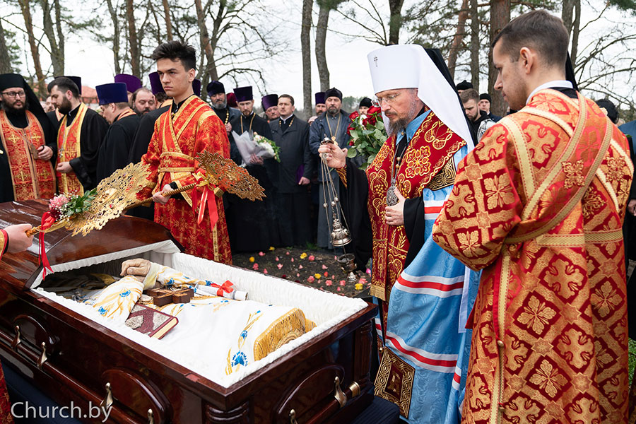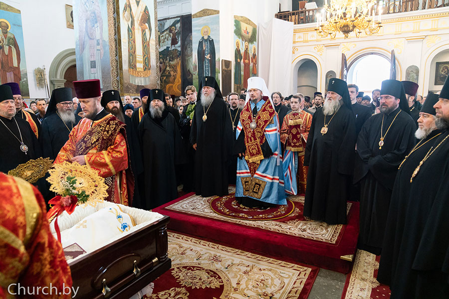 Заупокойную литию в Успенском соборе Жировичского монастыря совершил Патриарший Экзарх всея Беларуси митрополит Вениамин. Его Высокопреосвященству сослужили епископы и священнослужители Белорусского Экзархата, в частности, епископ Бобруйский и Быховский Серафим и секретарь епархиального управления протоиерей Сергий Коровинский.