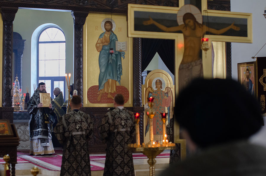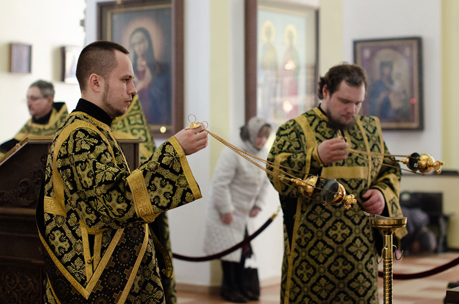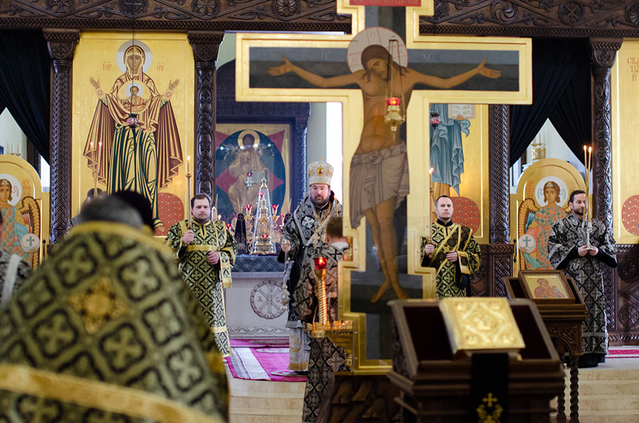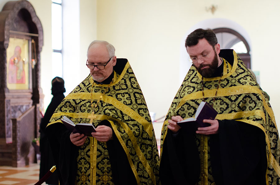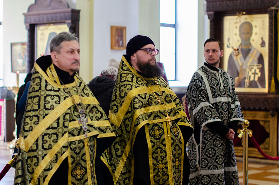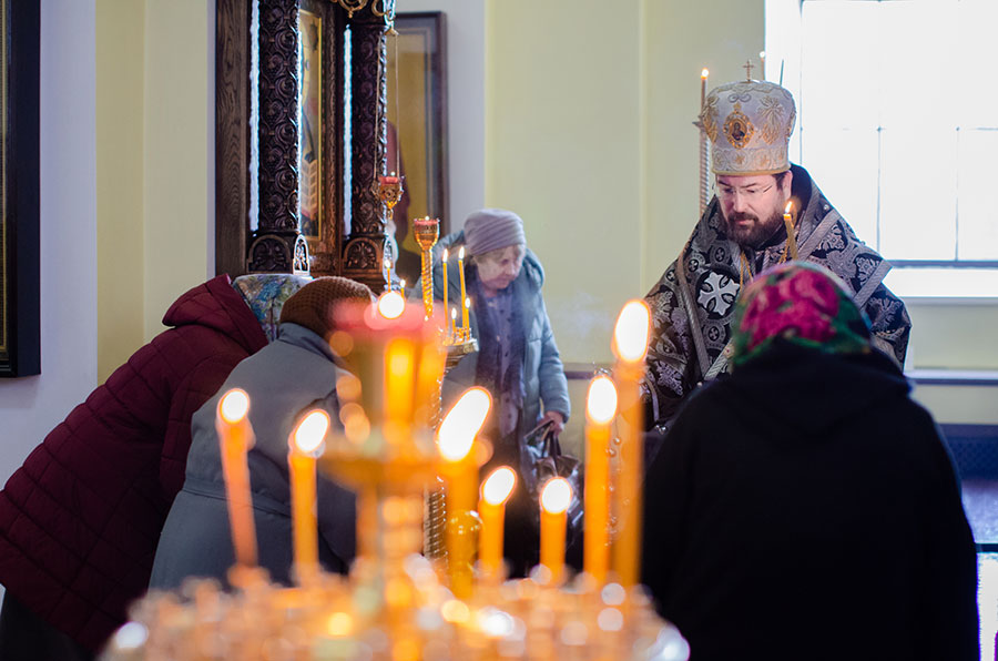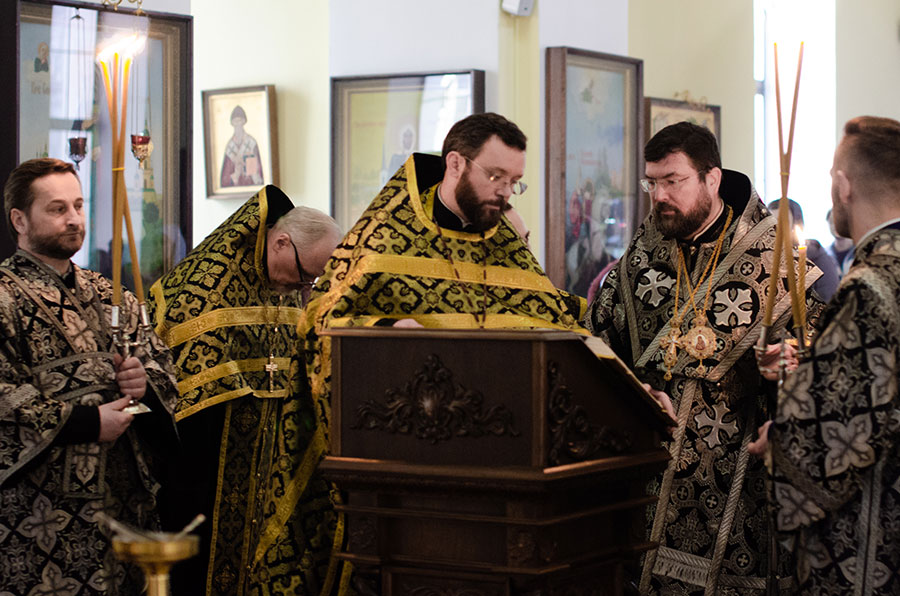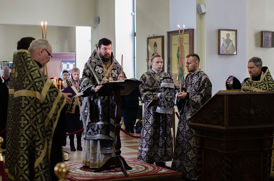 Его Преосвященству сослужили клирики кафедрального собора.