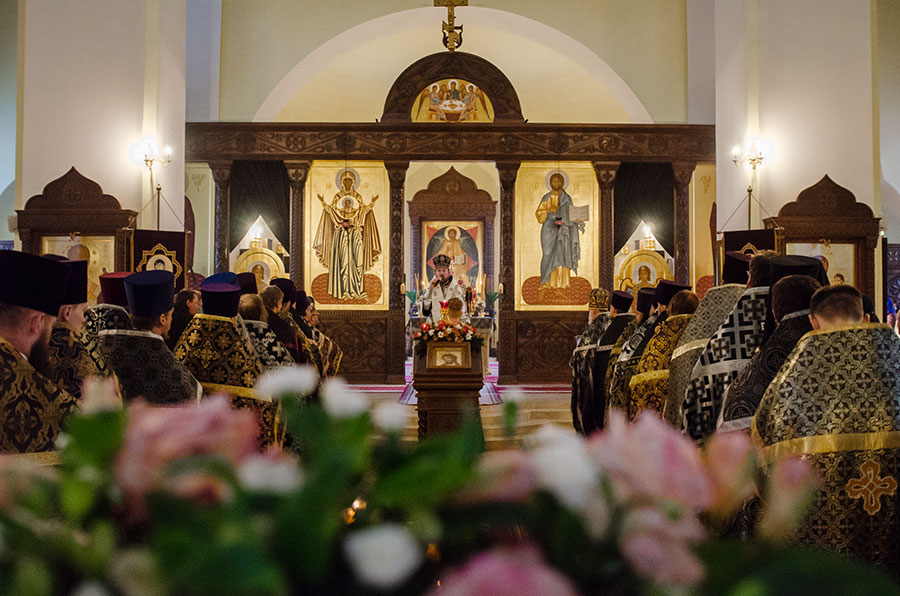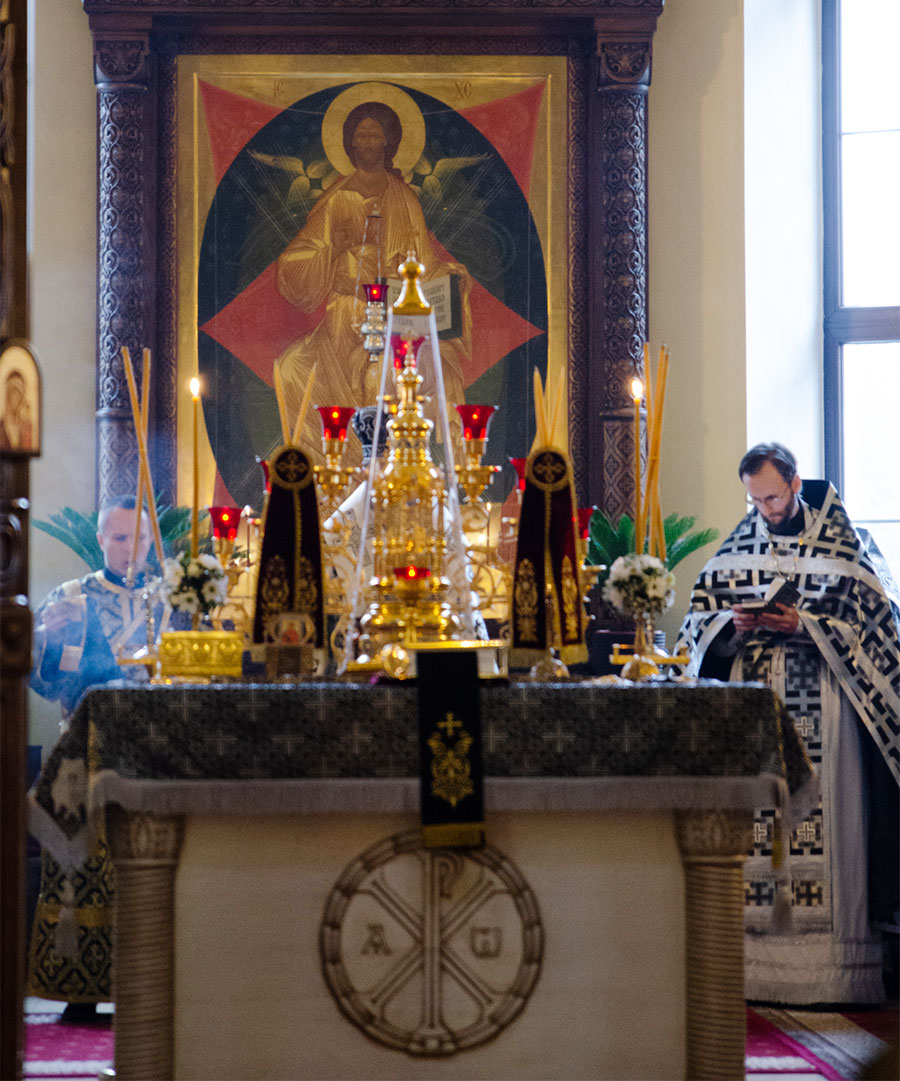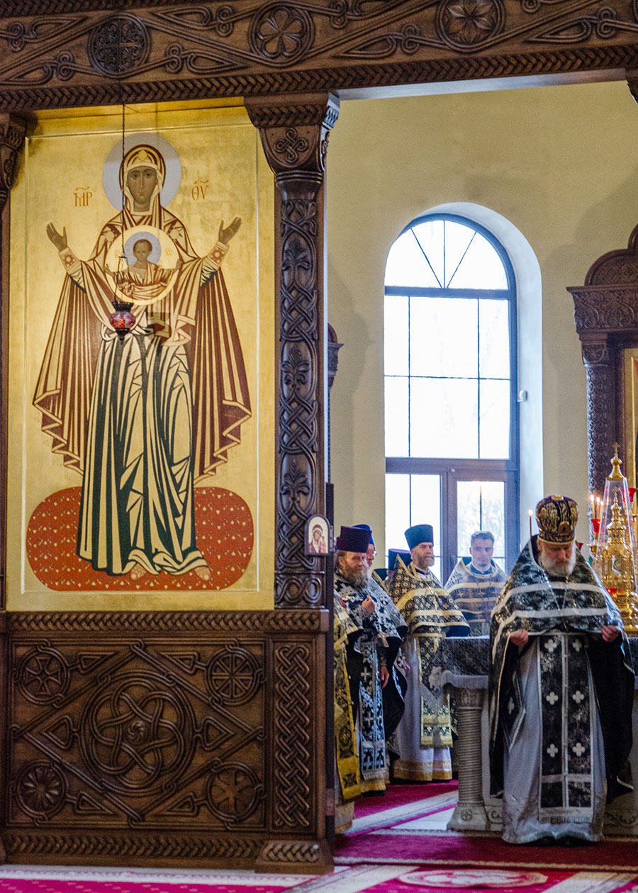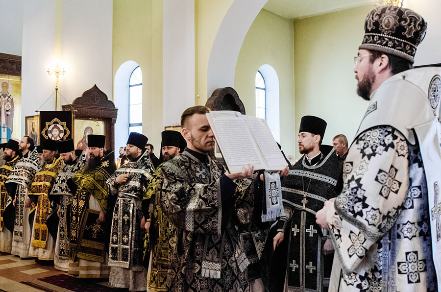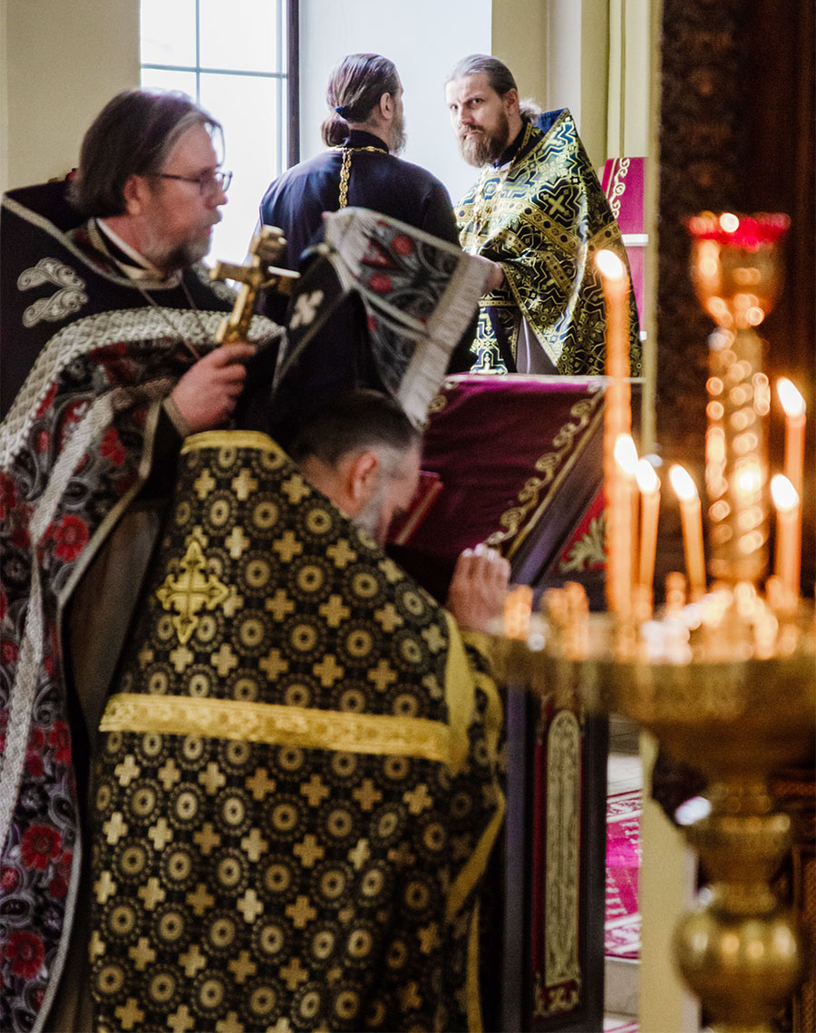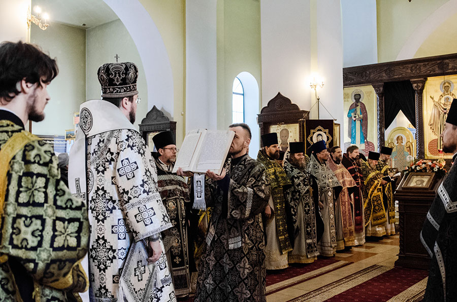 После отпуста епископ Серафим поздравил духовенство, прихожан и гостей кафедрального собора с причастием Святых Христовых Таин и совершением Литургии Преждеосвященных Даров.