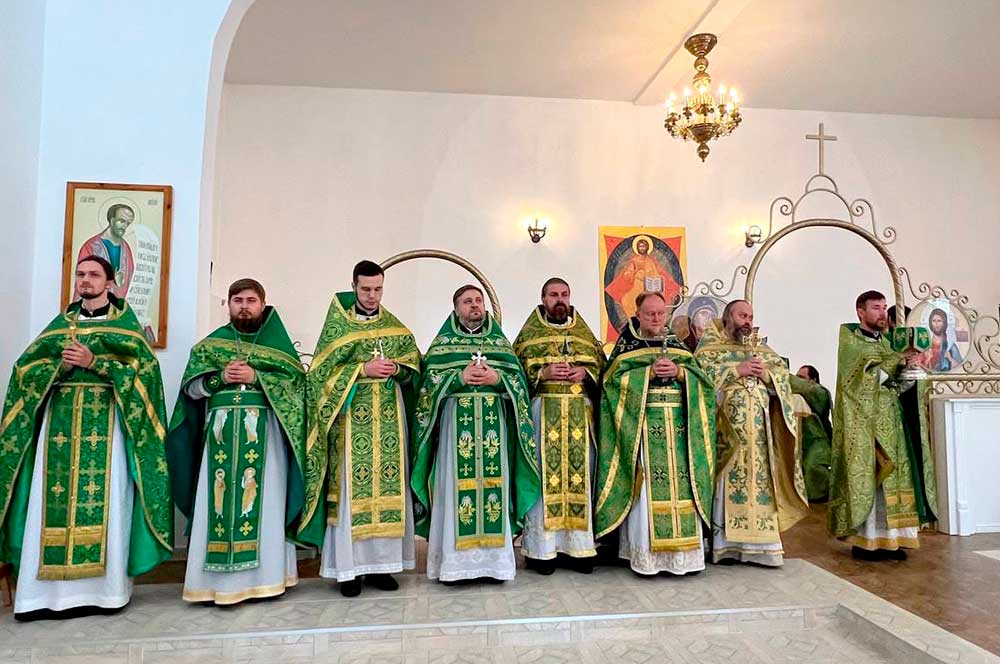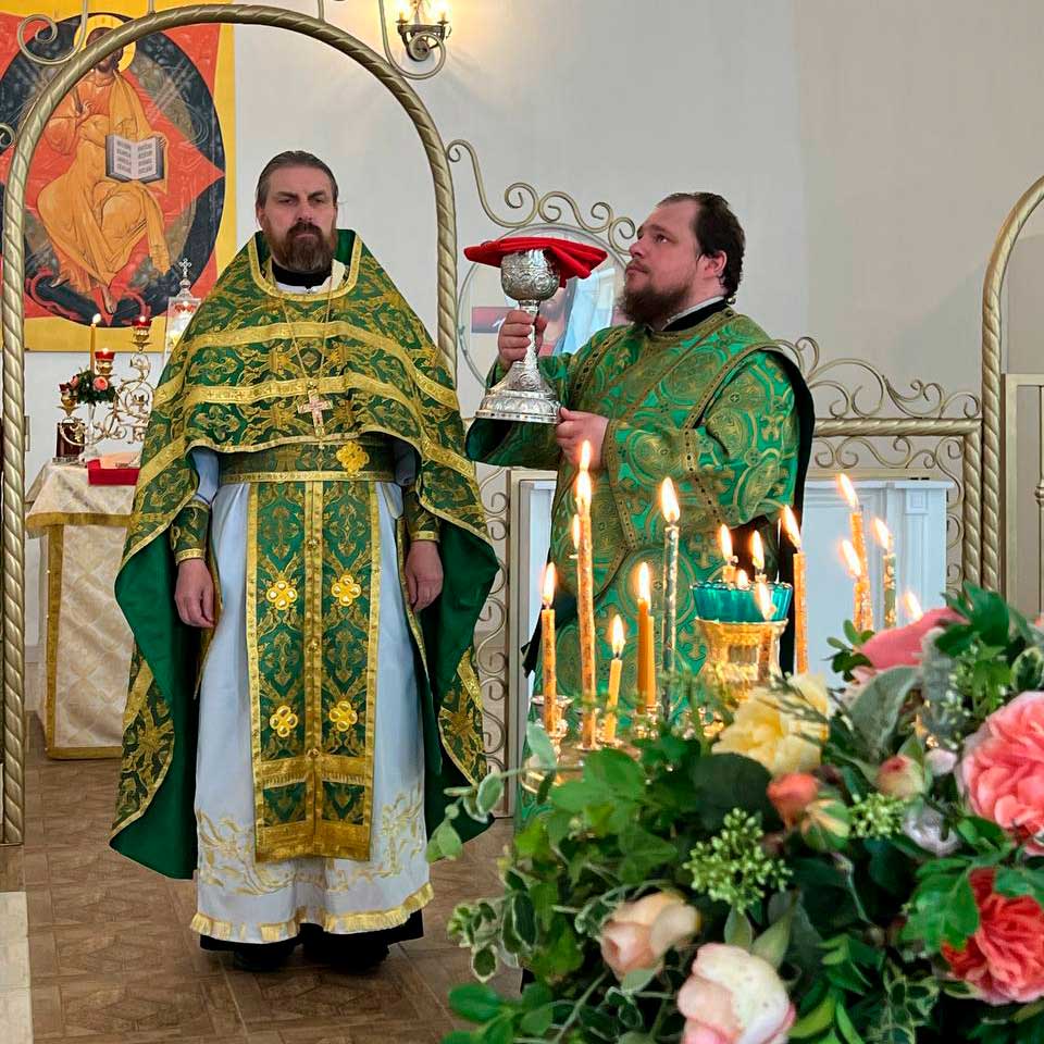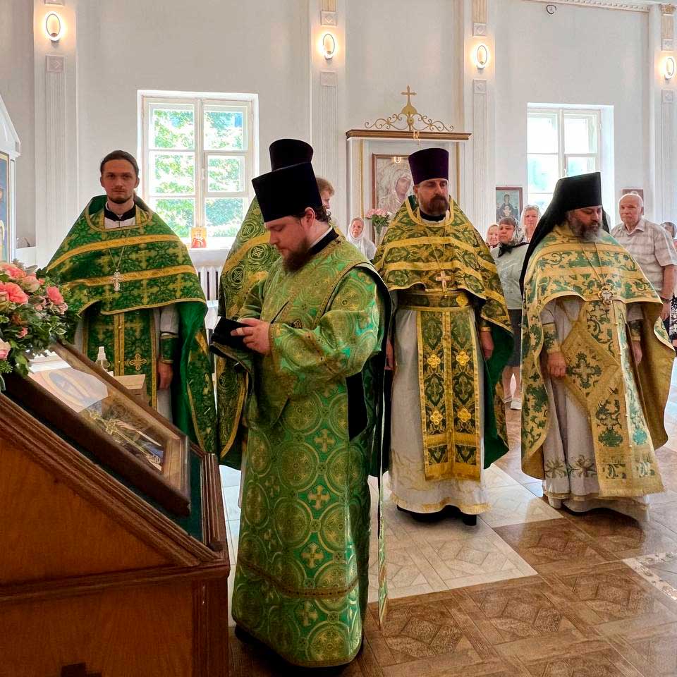 Божественную литургию совершил секретарь Бобруйского епархиального управления протоиерей Сергий Коровинский. Ему сослужили: благочинный монастырей Бобруйской епархии игумен Максим (Юндил), настоятель Георгиевского храма аг. Залужье Стародорожского района (Слуцкая епархия) протоиерей Александр Пигаль, настоятель Никольского храма аг. Свислочь протоиерей Андрей Клепча, настоятель Николо-Софийского храма г. Бобруйска протоиерей Димитрий Баркарь, клирик храма Святого Духа г. Бобруйска иерей Антоний Ходасевич, настоятель Покровского храма г. Бобруйска иерей Павел Киселев, клирик Никольского кафедрального собора г. Бобруйска диакон Аркадий Андреев, клирик мужского монастыря иконы Божией Матери «Живоносный Источник» (Прощанская пустынь) иеродиакон Марк (Вабищевич).