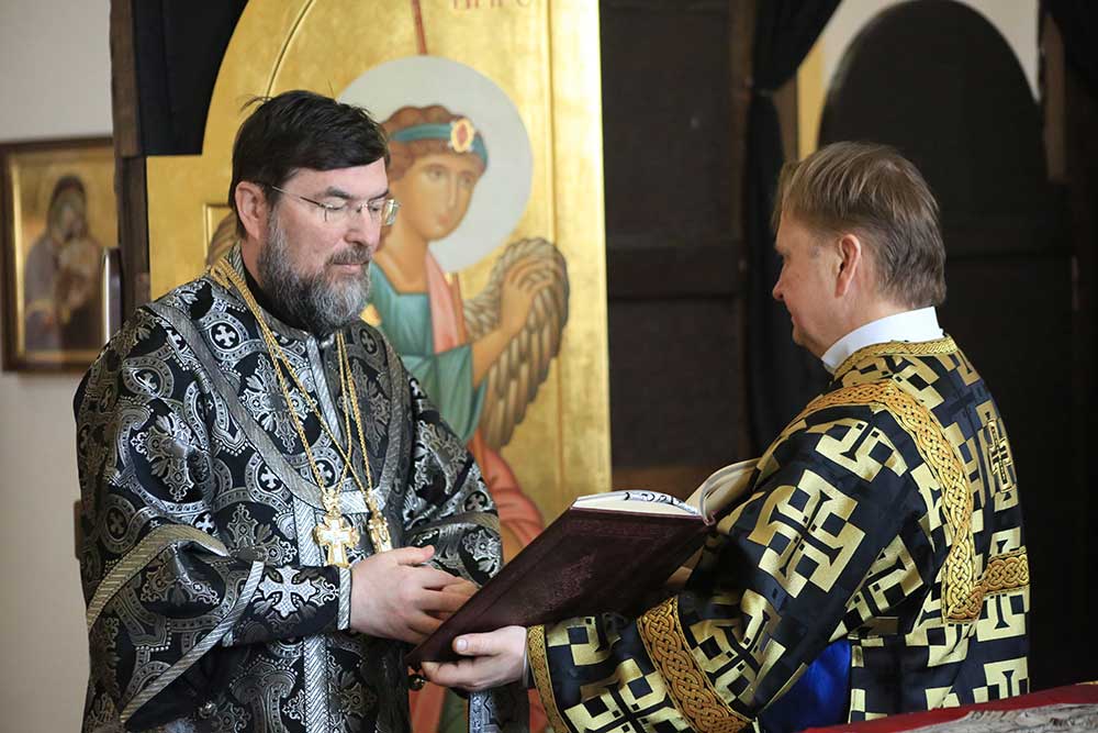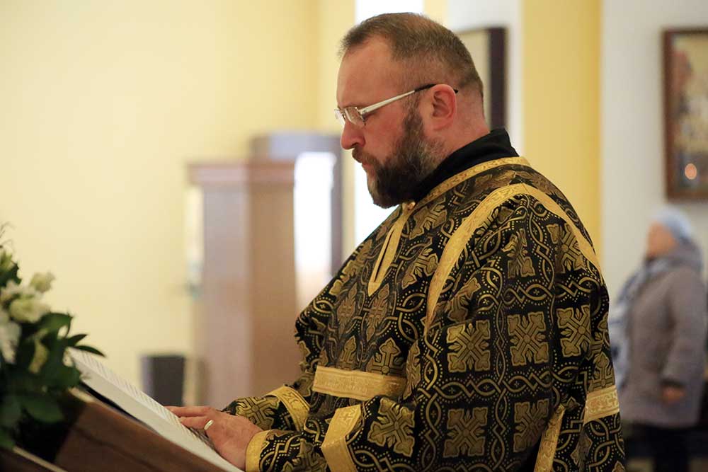 Его Преосвященству сослужили благочинный Бобруйского городского округа, настоятель Никольского кафедрального собора иерей Сергий Гусар, клирики Никольского кафедрального собора иерей Алексий Поляков и диакон Аркадий Андреев.