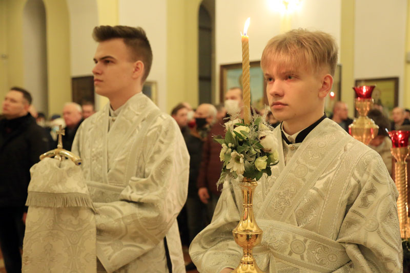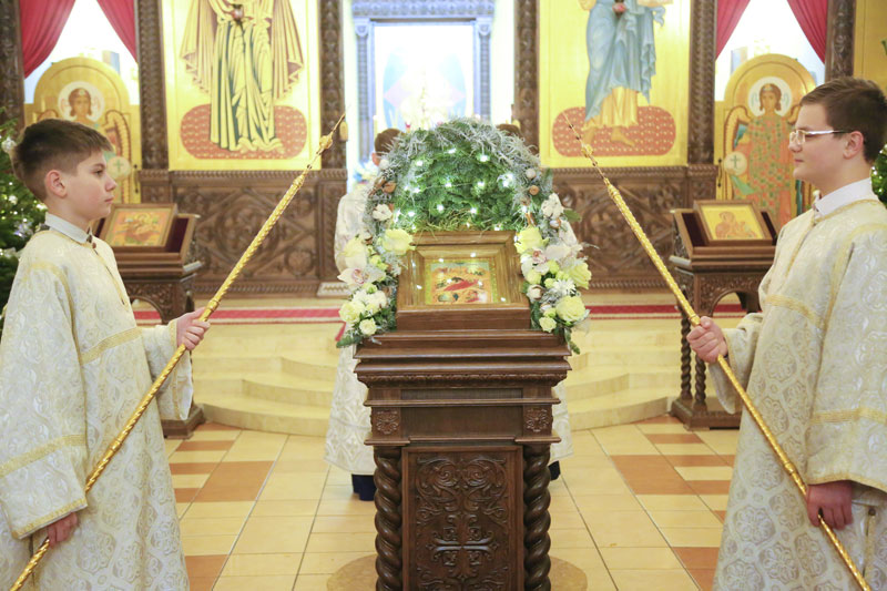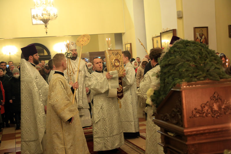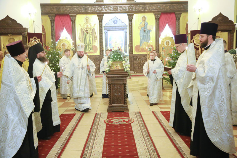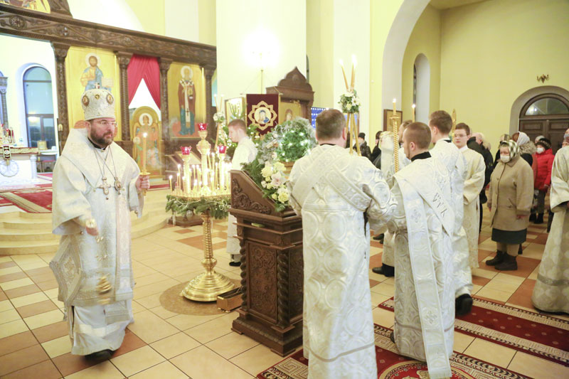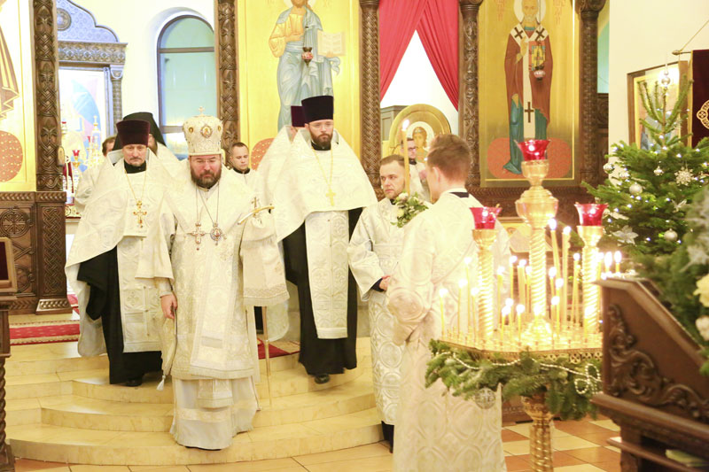 Накануне праздника Рождества Христова епископ Серафим совершил всенощное бдение в Никольском кафедральном соборе.