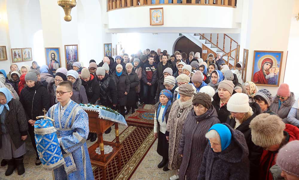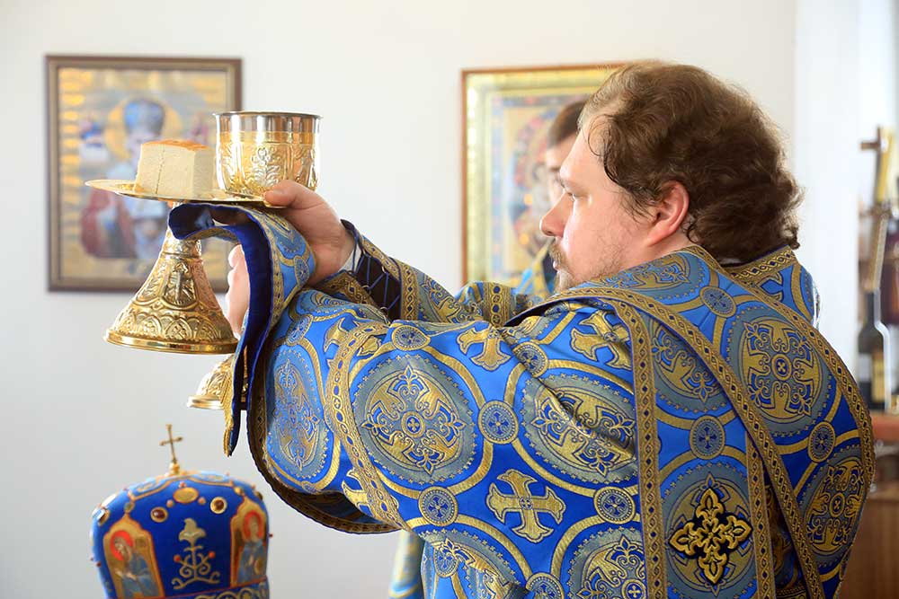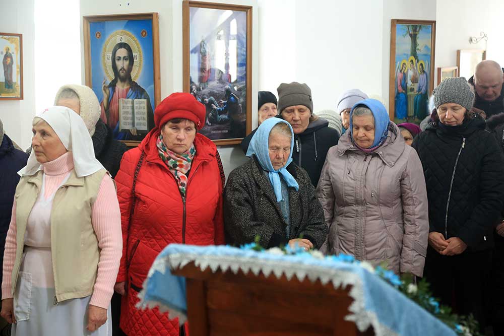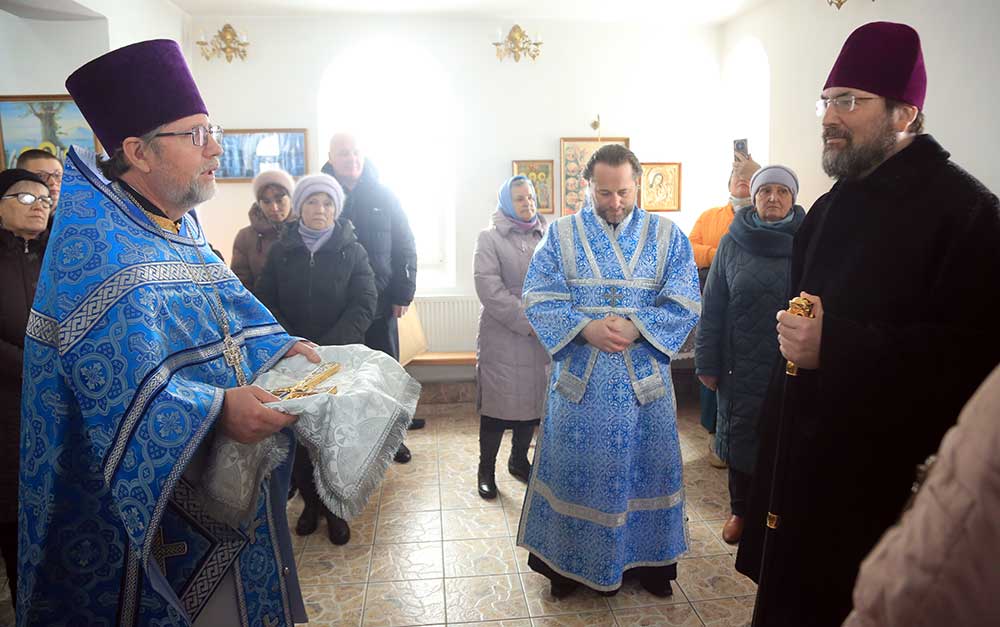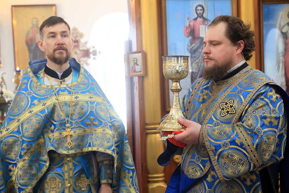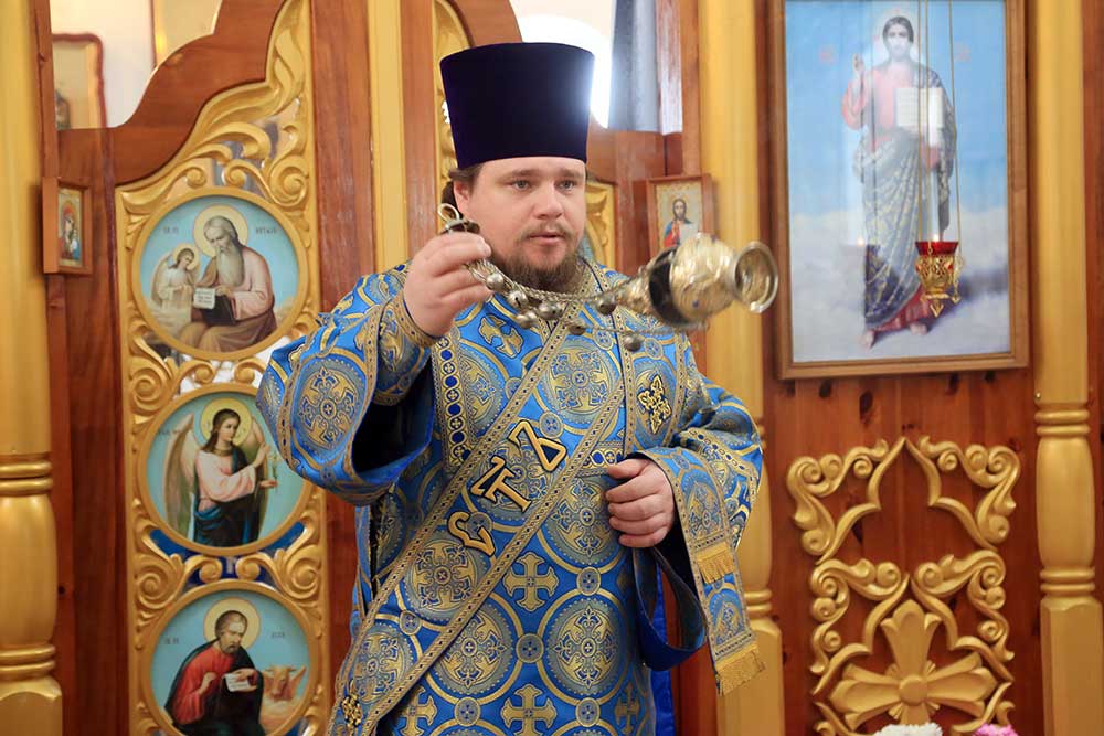 Его Преосвященству сослужили секретарь Бобруйского епархиального управления протоиерей Сергий Коровинский, благочинный Кличевского районного округа, настоятель храма протоиерей Сергий Андреев.