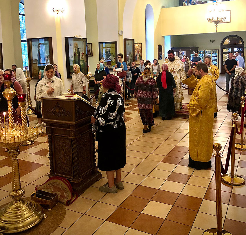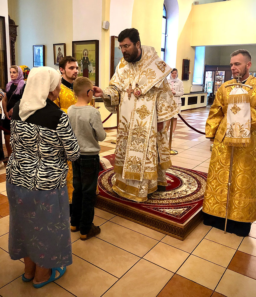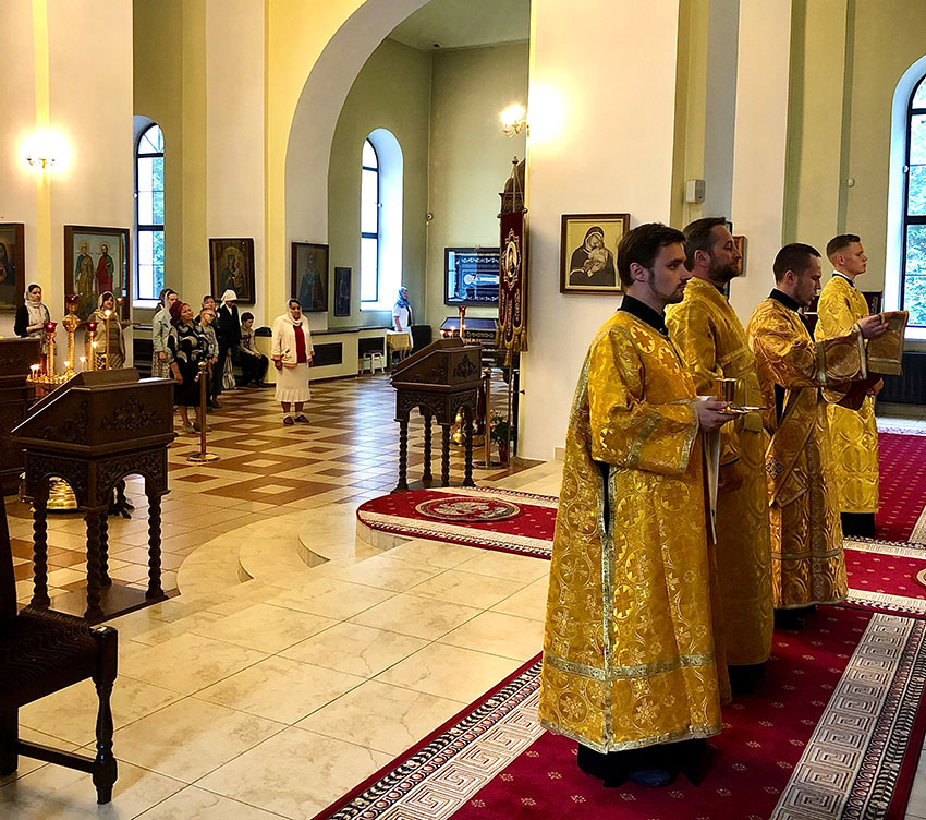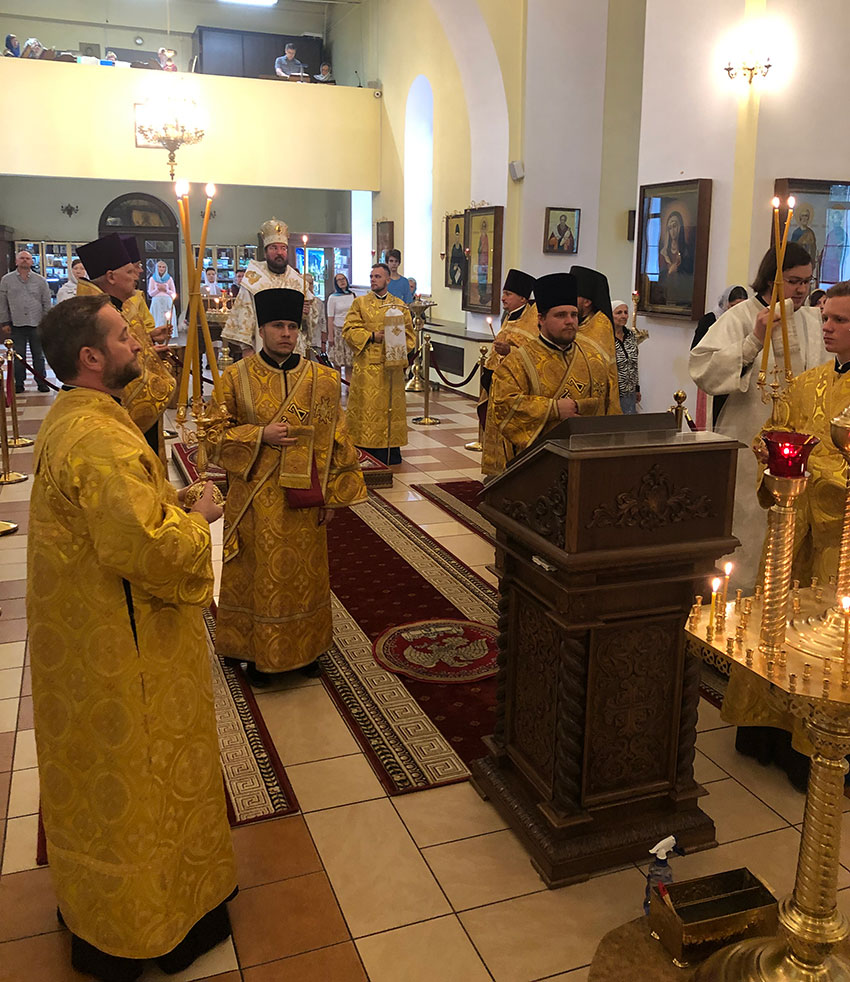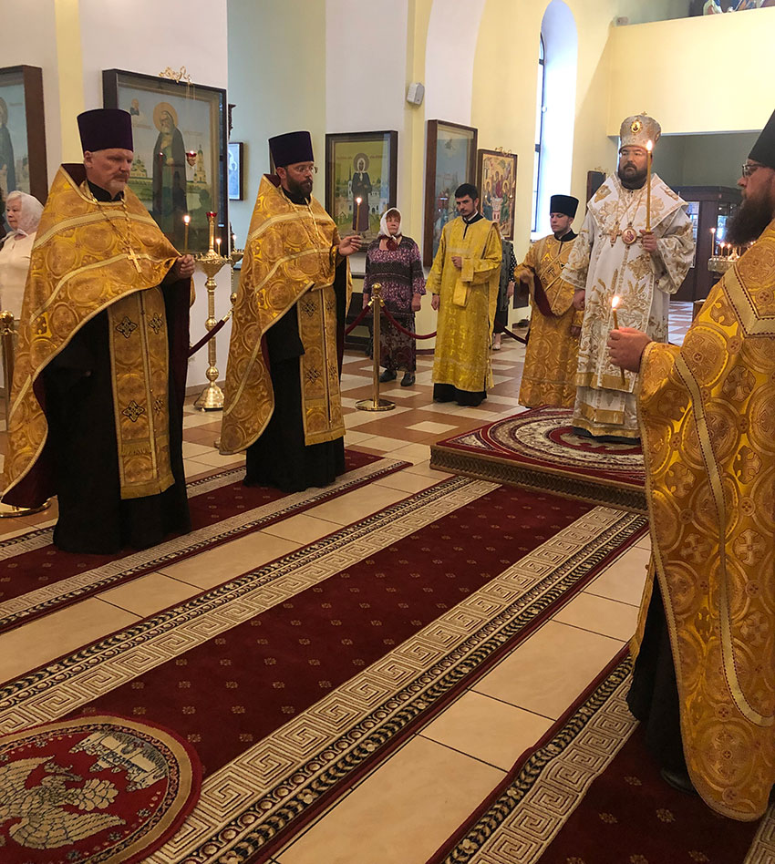 Его Преосвященству сослужили: настоятель иерей Сергий Гусар, протоиерей Михаил Прокофьев, иерей Алексий Болотов, иеромонах Димитрий (Мамонов).