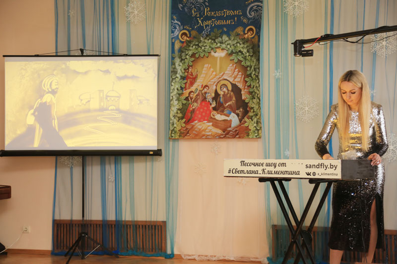 Художник по песку Светлана Климентина с пескографией на тему «Рождественская история».